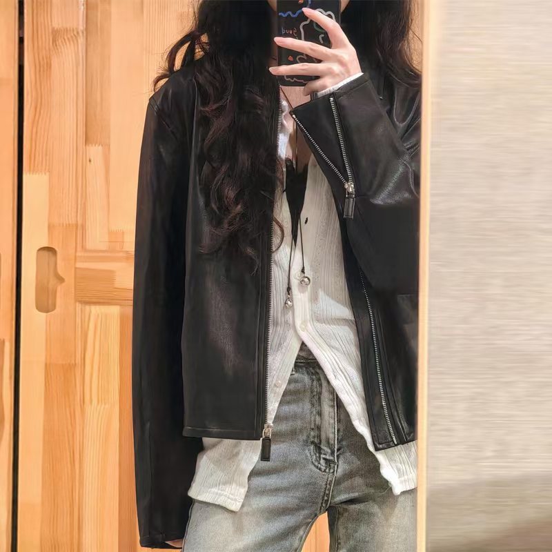 여성용 블랙 가죽 자켓 2025 봄, 가을 신상 자켓 고급 짧은 스타일 작은 사람들을 위한 올해 인기 스타일스토어 가기