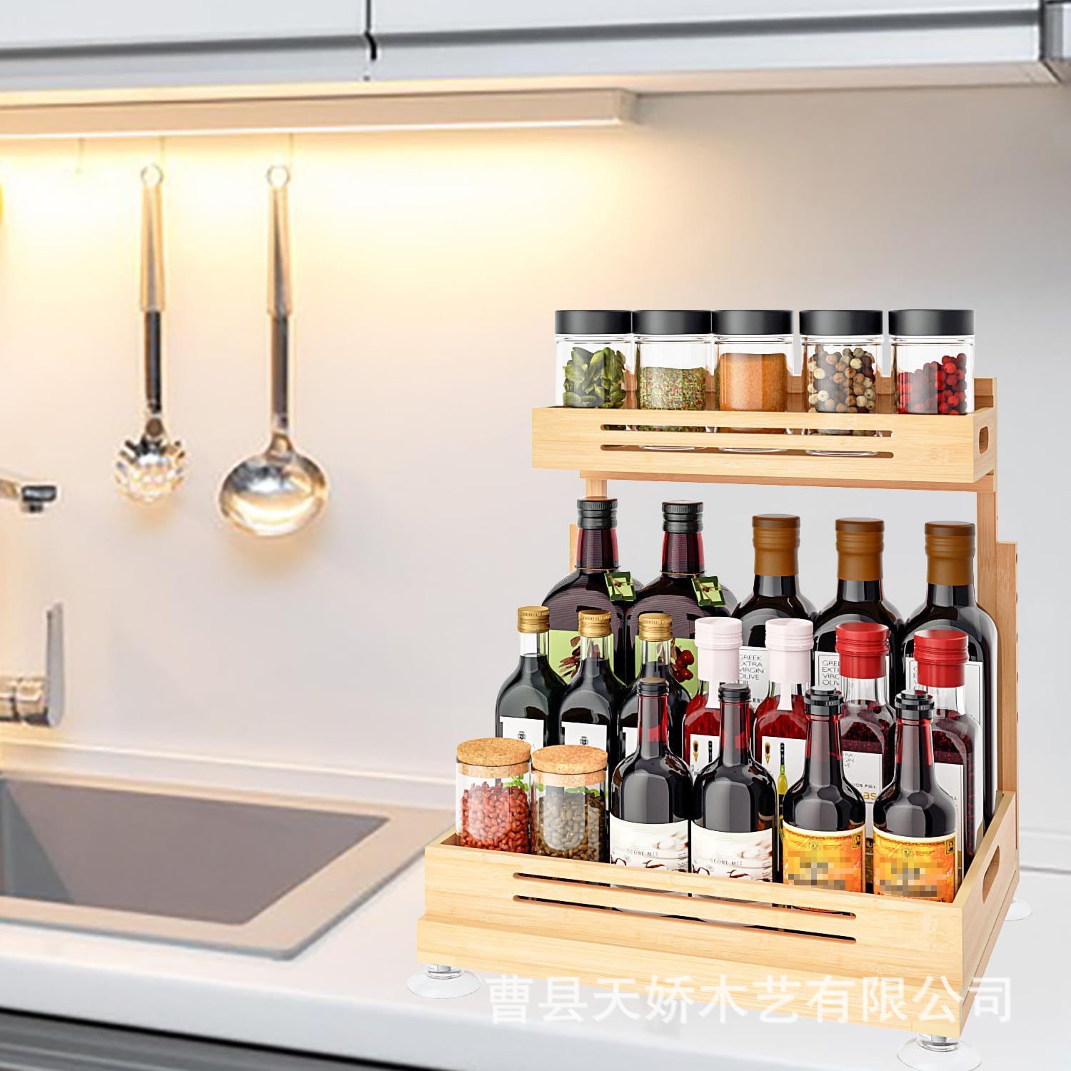 단단한 나무 데스크탑 스토리지 랙 주방 조미료 디스플레이 나무 랙 과일 및 야채 더블 레이어 스토리지 랙 나무 스토리지 랙