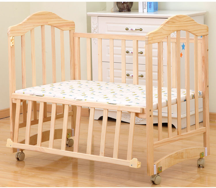단단한 나무 유아용 침대 신생아 단단한 나무 페인트가없는 환경 친화적 인 아기 침대 요람 침대 이동식 책상 접합 대형 침대스토어 가기