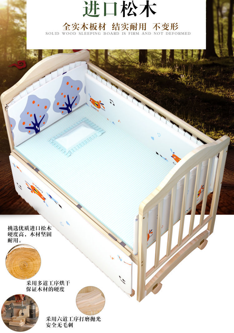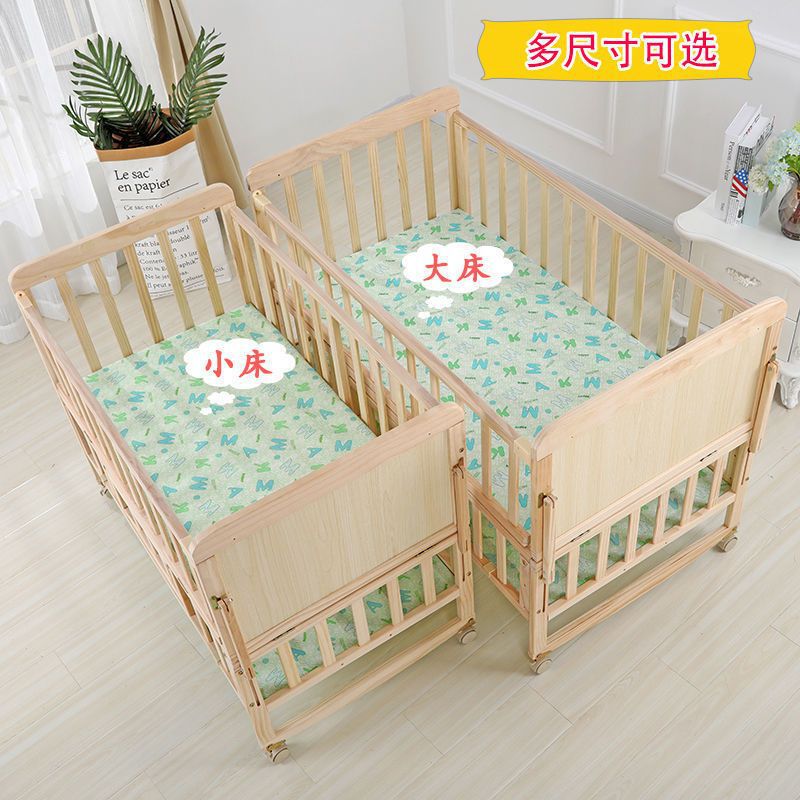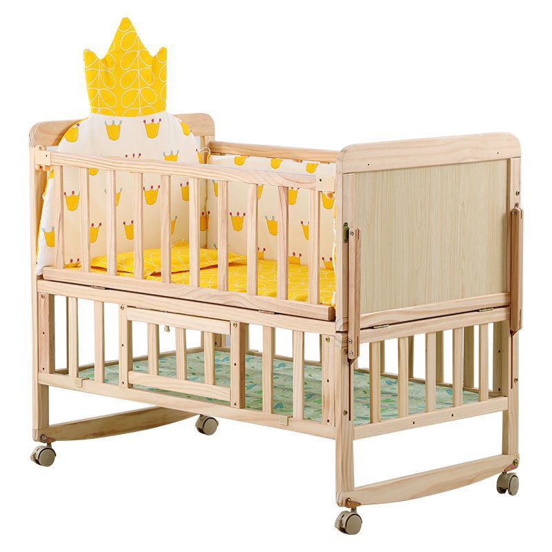 단단한 나무 유아용 침대 신생아 단단한 나무 페인트가없는 환경 친화적 인 아기 침대 요람 침대 이동식 책상 접합 대형 침대
