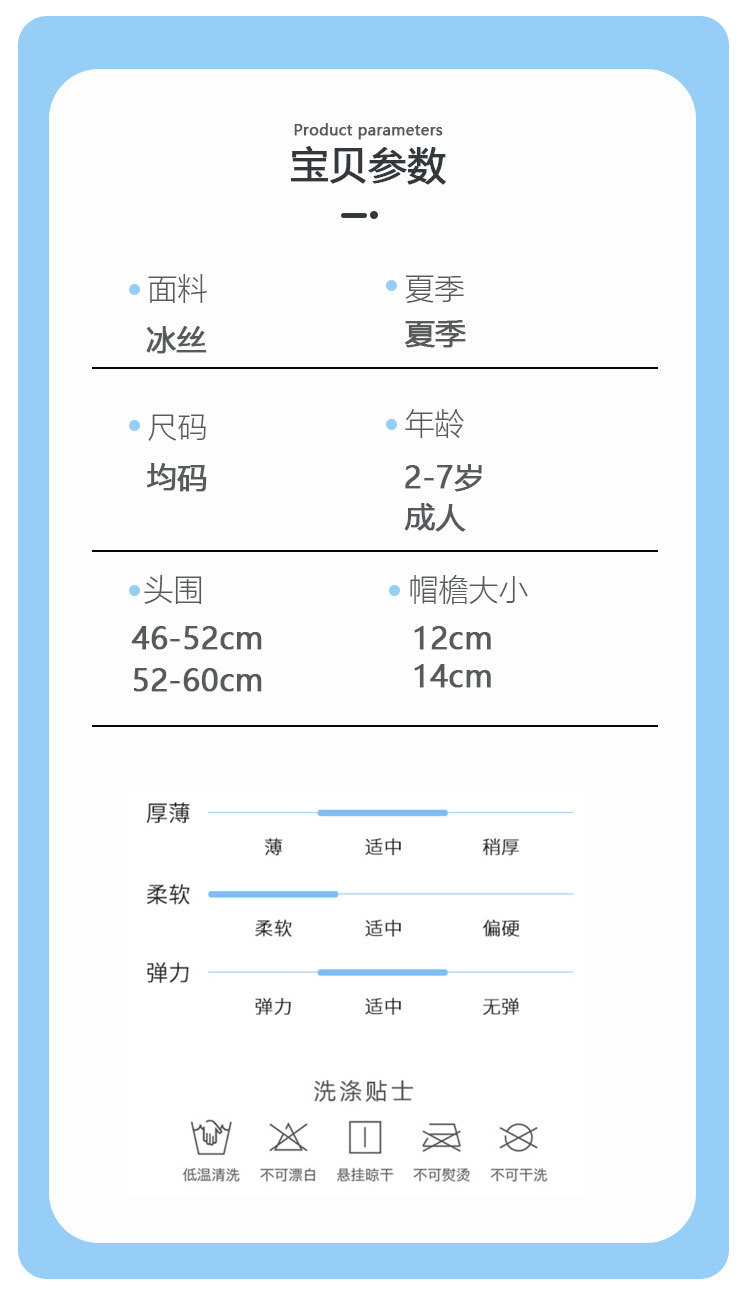 • 블랙 양면 아이스 실크 라지 챙 + 숄 [방풍 로프 + 스트랩 로프 포함] + 머리 둘레 48~52cm / 2~8세 권장 + 권장 머리 둘레에 맞춰 구매