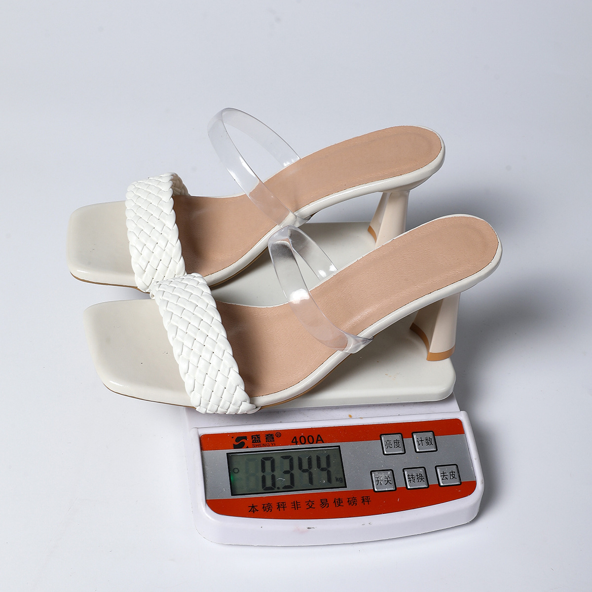 2025년 크로스보더 대외 무역 플러스 사이즈 여름 신작 유럽과 미국의 원라인 직조 스틸레토 하이힐 투명 기질 샌들스토어 가기