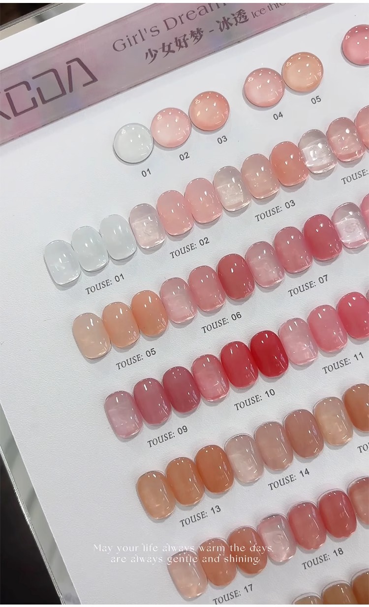 Xikoko의 새로운 24색 소녀의 꿈 아이스 투명 매니큐어 젤 누드 파우더 스킨 젤리 베이스 블러셔 아이스 투명 컬러 젤