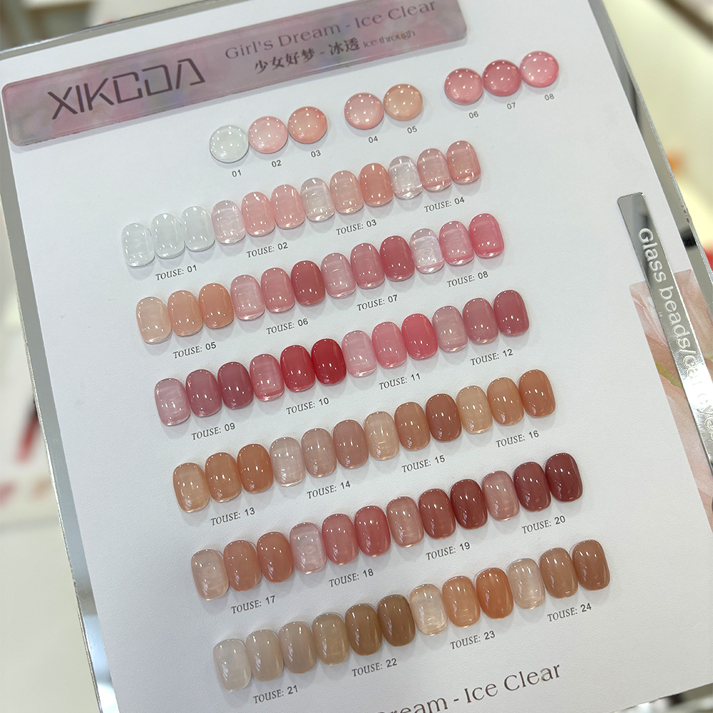 Xikoko의 새로운 24색 소녀의 꿈 아이스 투명 매니큐어 젤 누드 파우더 스킨 젤리 베이스 블러셔 아이스 투명 컬러 젤스토어 가기