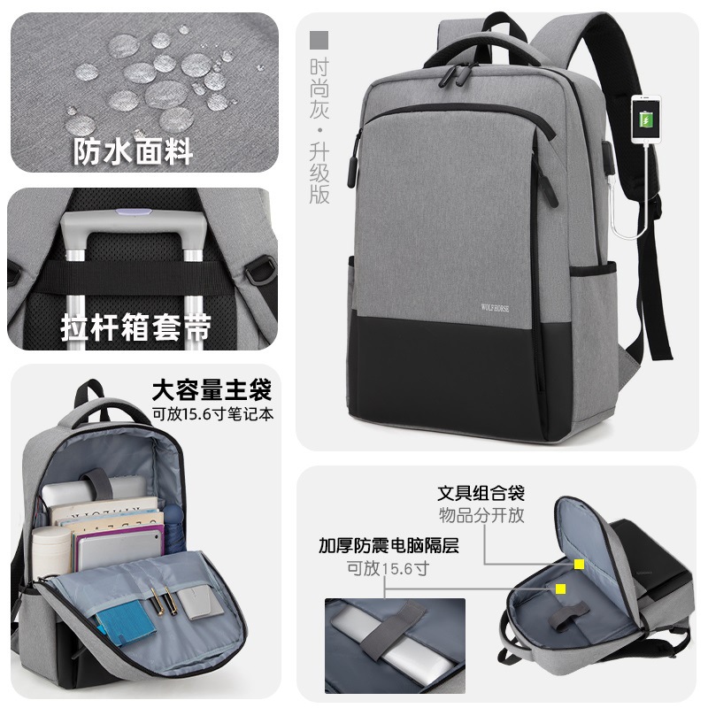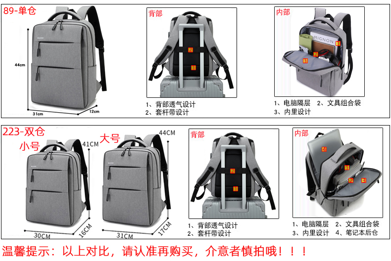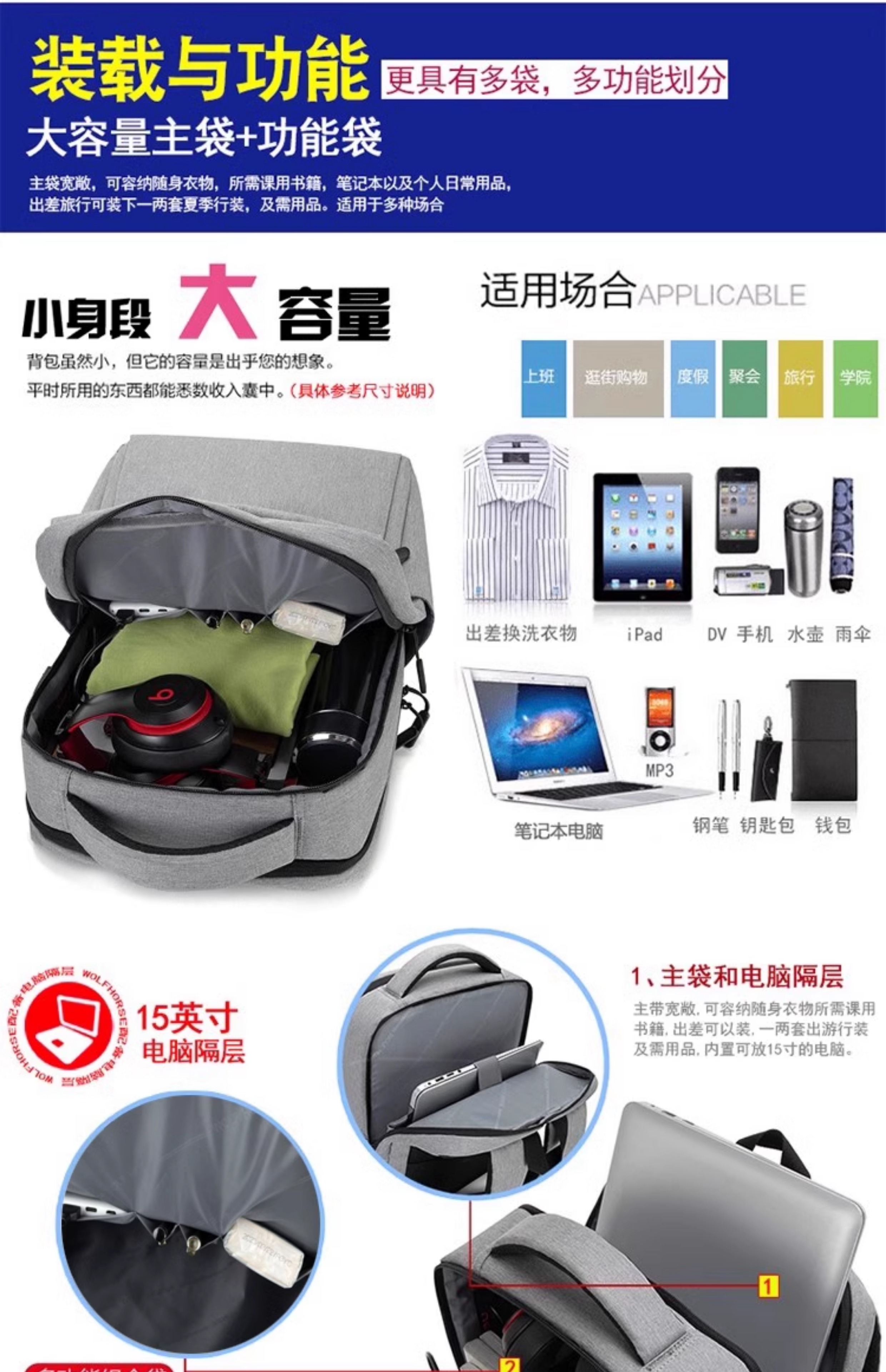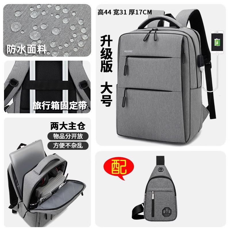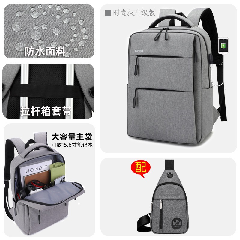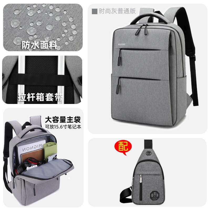 • 블랙 스몰 백팩이 포함된 패셔너블한 그레이 대형 더블 수납공간 일반 버전【223】