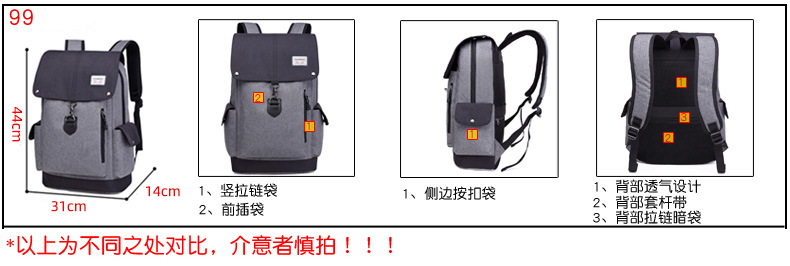 • 블랙 스몰 백팩이 포함된 패셔너블한 그레이 소형 더블 수납공간 일반 버전【223】