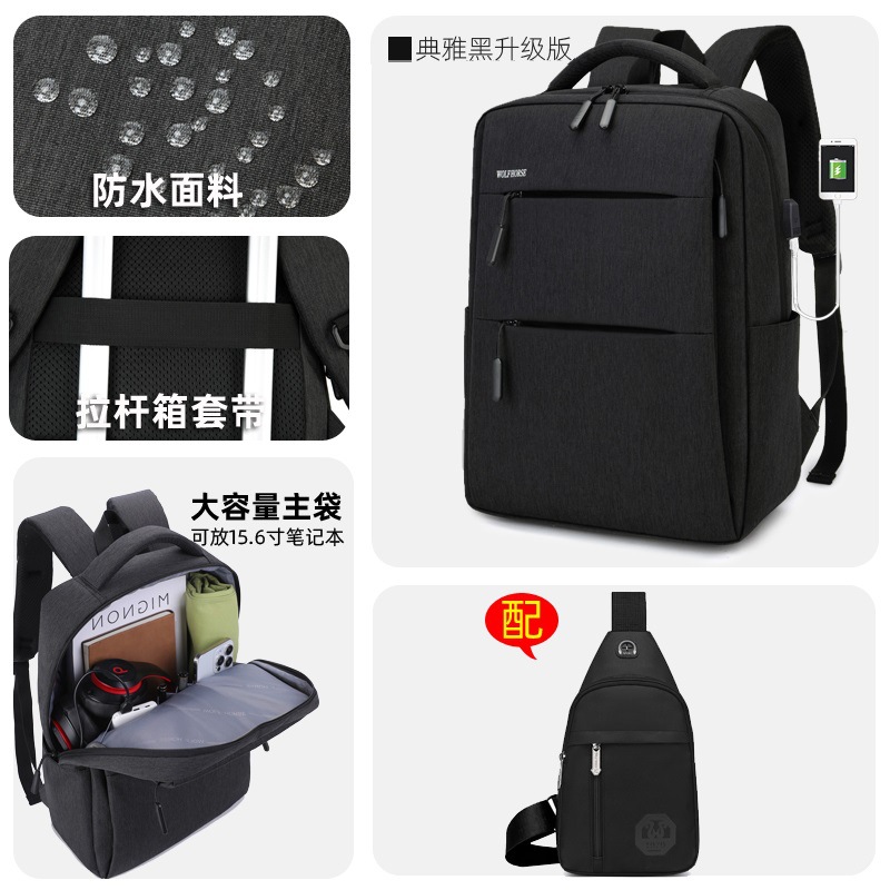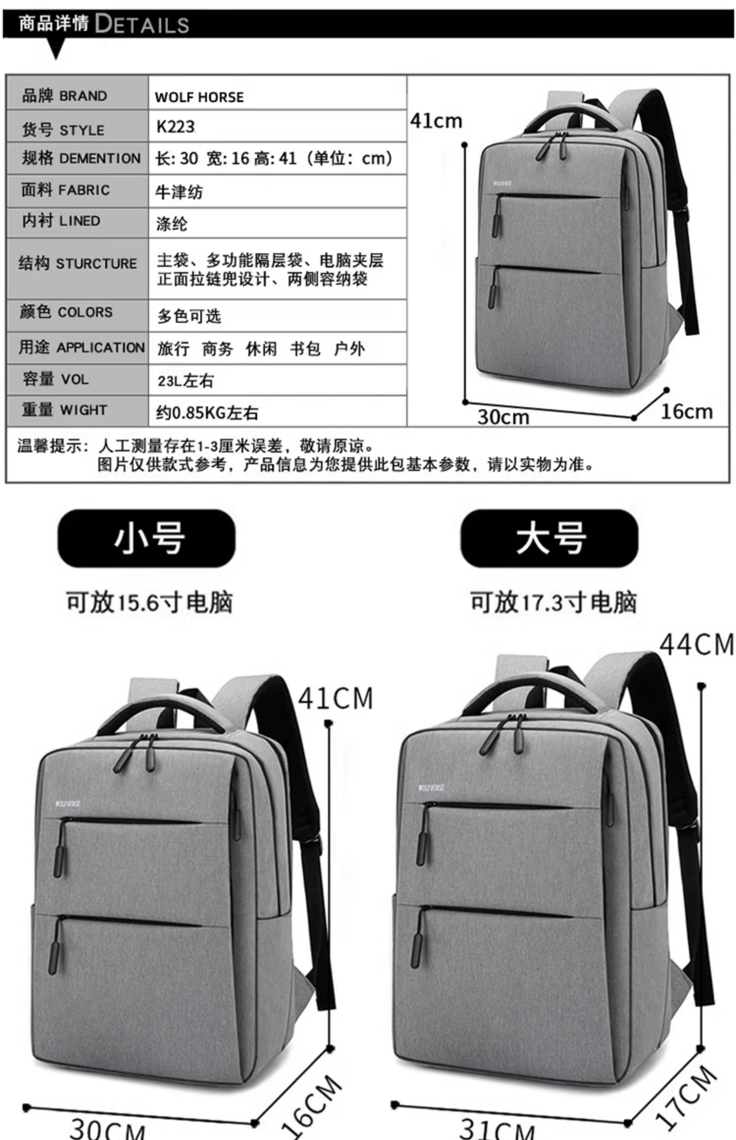• 스페이스 그레이 대형 더블 수납 업그레이드 버전과 작은 검정색 백팩【223】
