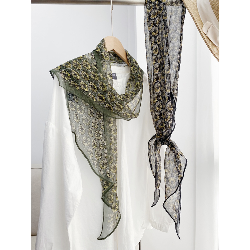 봄 여름 여성용 긴 실크 스카프, 가볍고 얇은 조젯 스카프, 캐주얼 아우터 스카프, 경사진 리본, 가볍고 부드러운 스카프스토어 가기