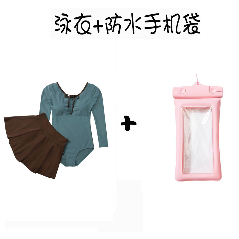 발레 일본 소녀 원피스 수영복 보수적인 배 커버 슬리밍 스커트 스타일 투피스 학생 긴팔 온천 수영복스토어 가기