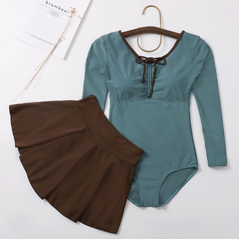 발레 일본 소녀 원피스 수영복 보수적인 배 커버 슬리밍 스커트 스타일 투피스 학생 긴팔 온천 수영복