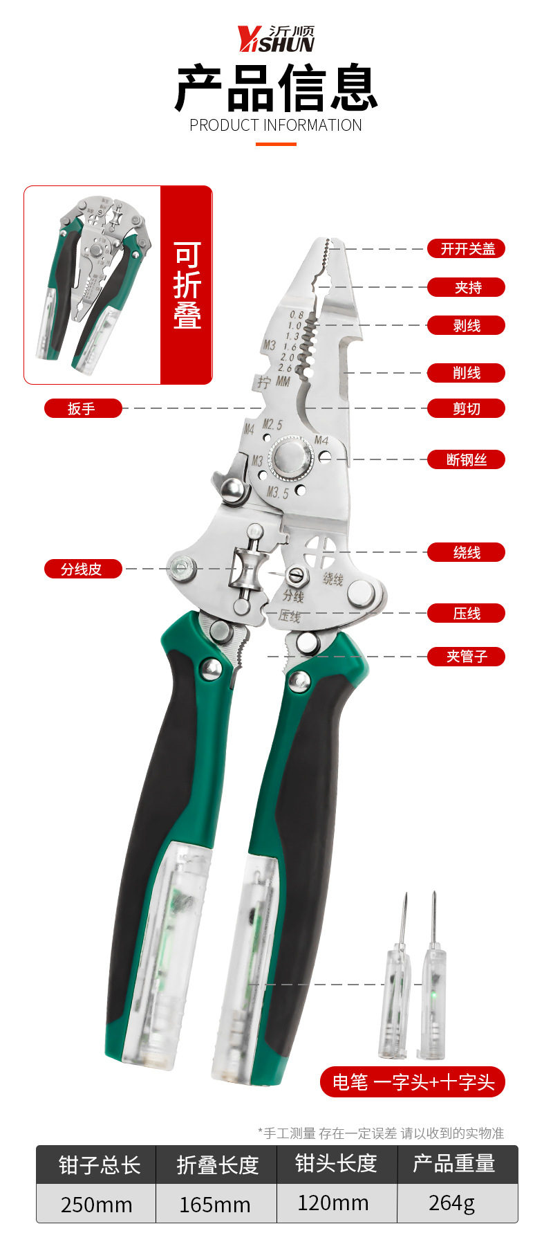 • [듀얼 전기 펜 포함] 다기능 접이식 와이어 스트리퍼