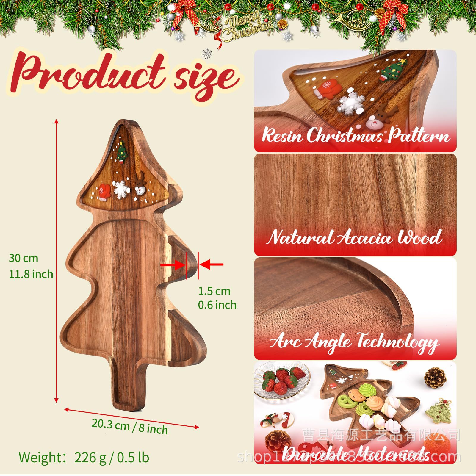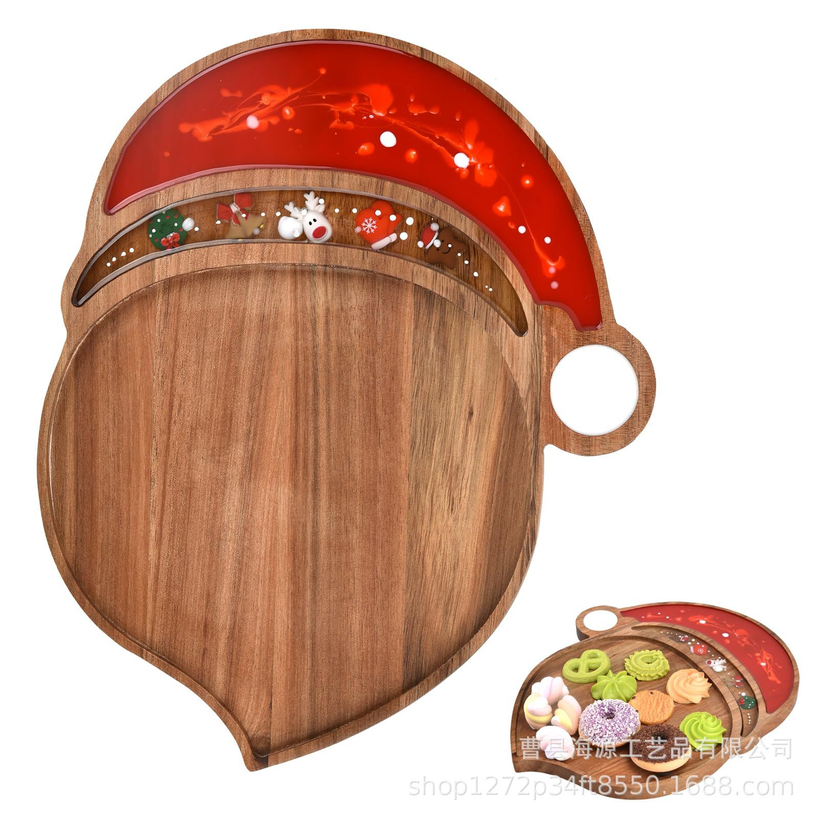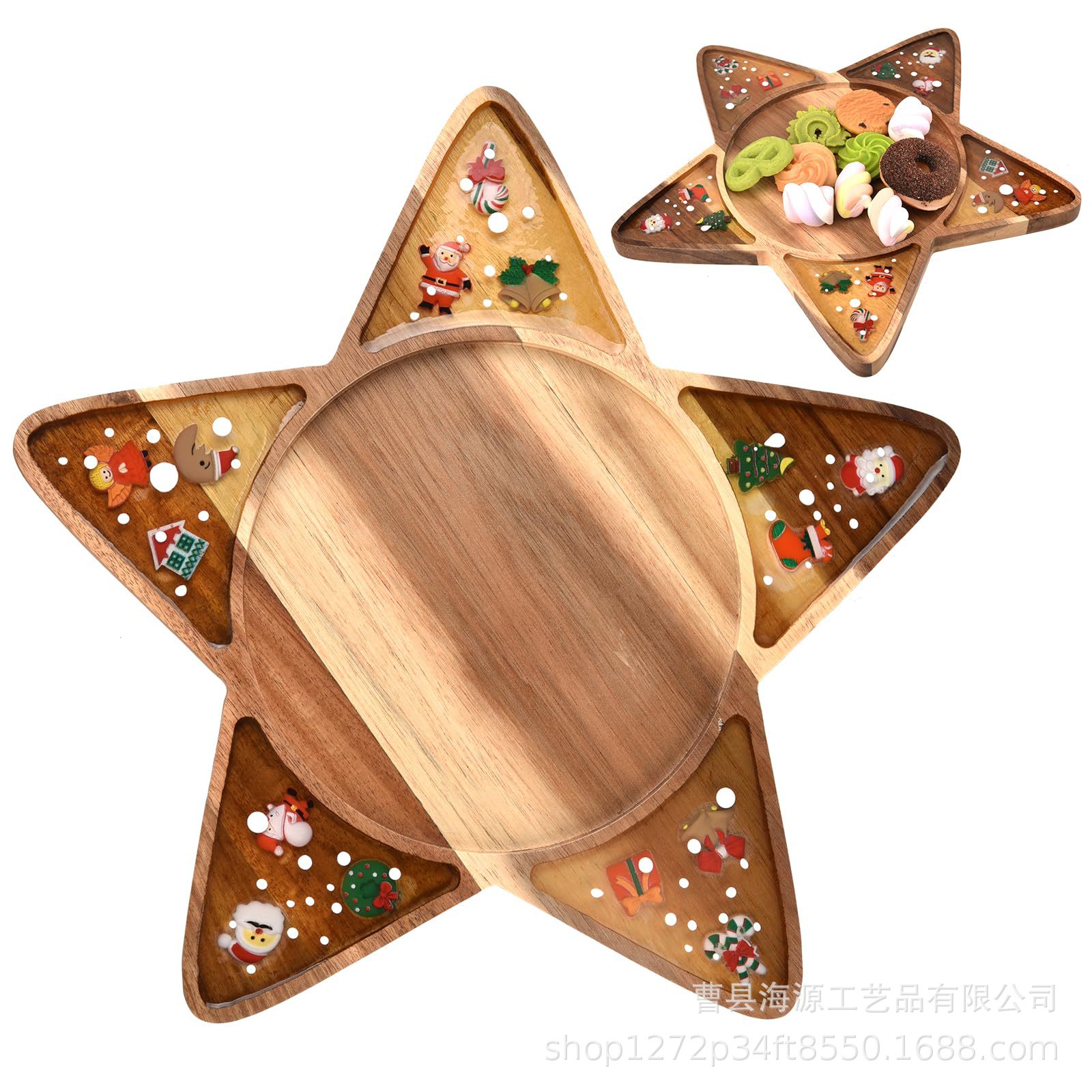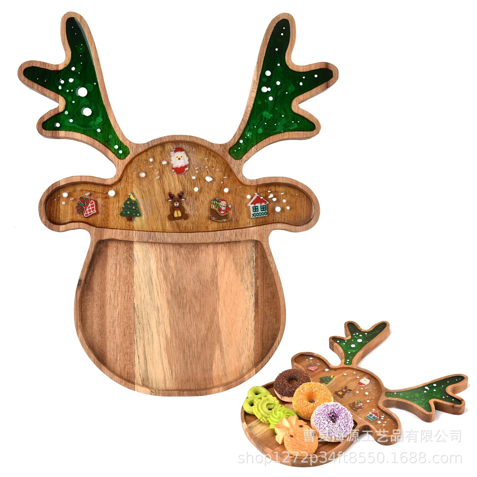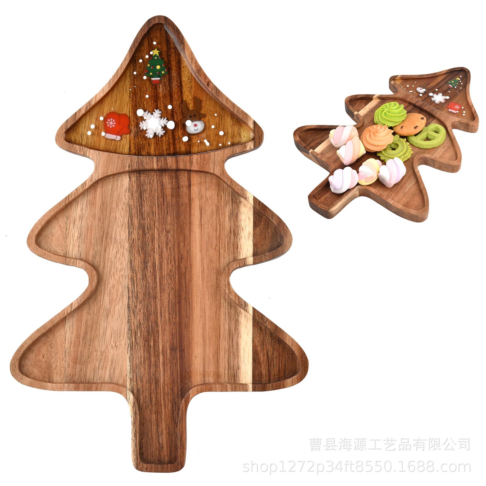 국경 간 목조 크리스마스 장식 접시 단단한 나무 크리스마스 트리 모양의 나무 트레이 아카시아 나무 나무 스낵 접시