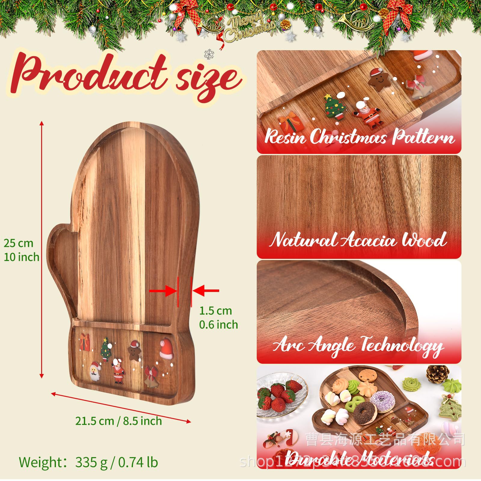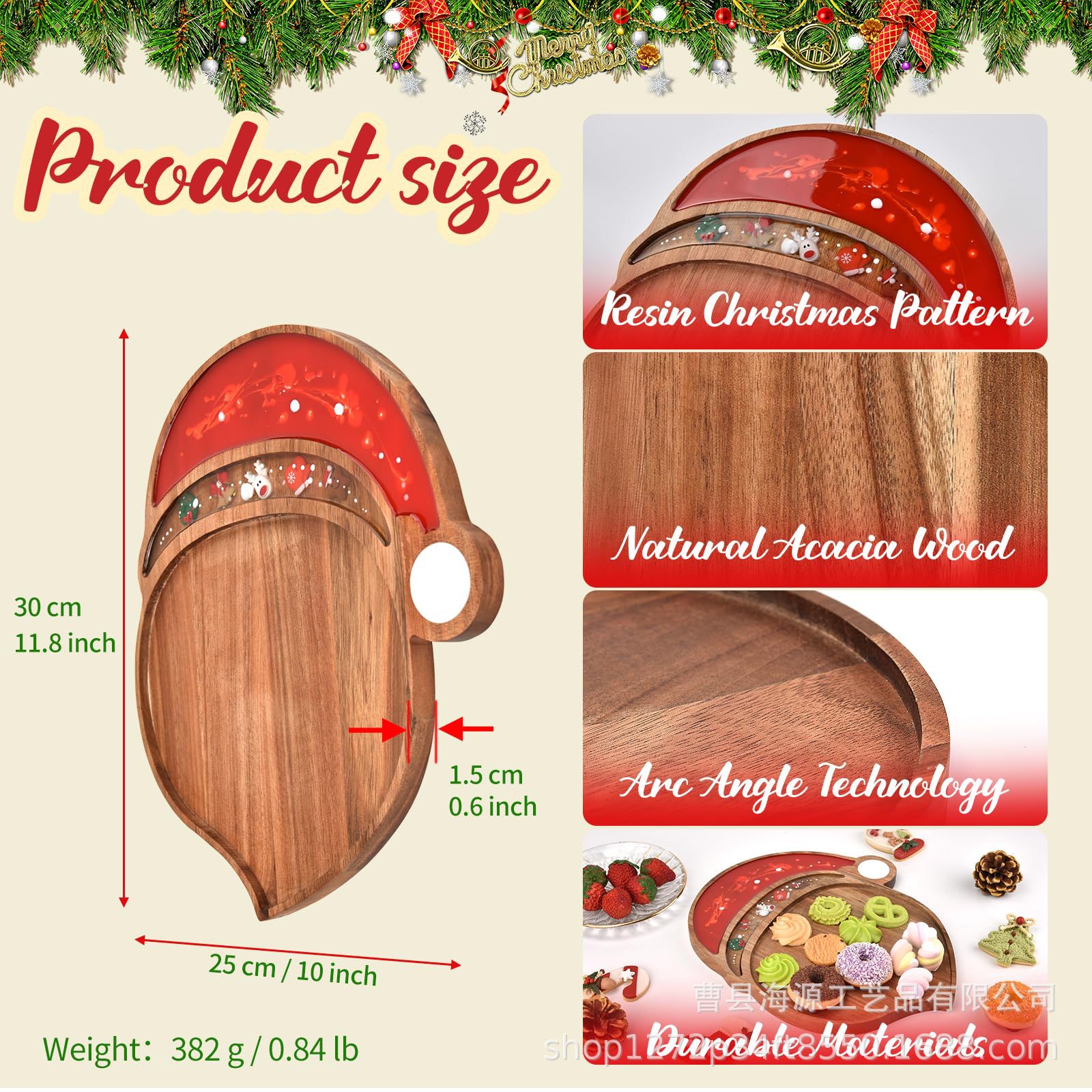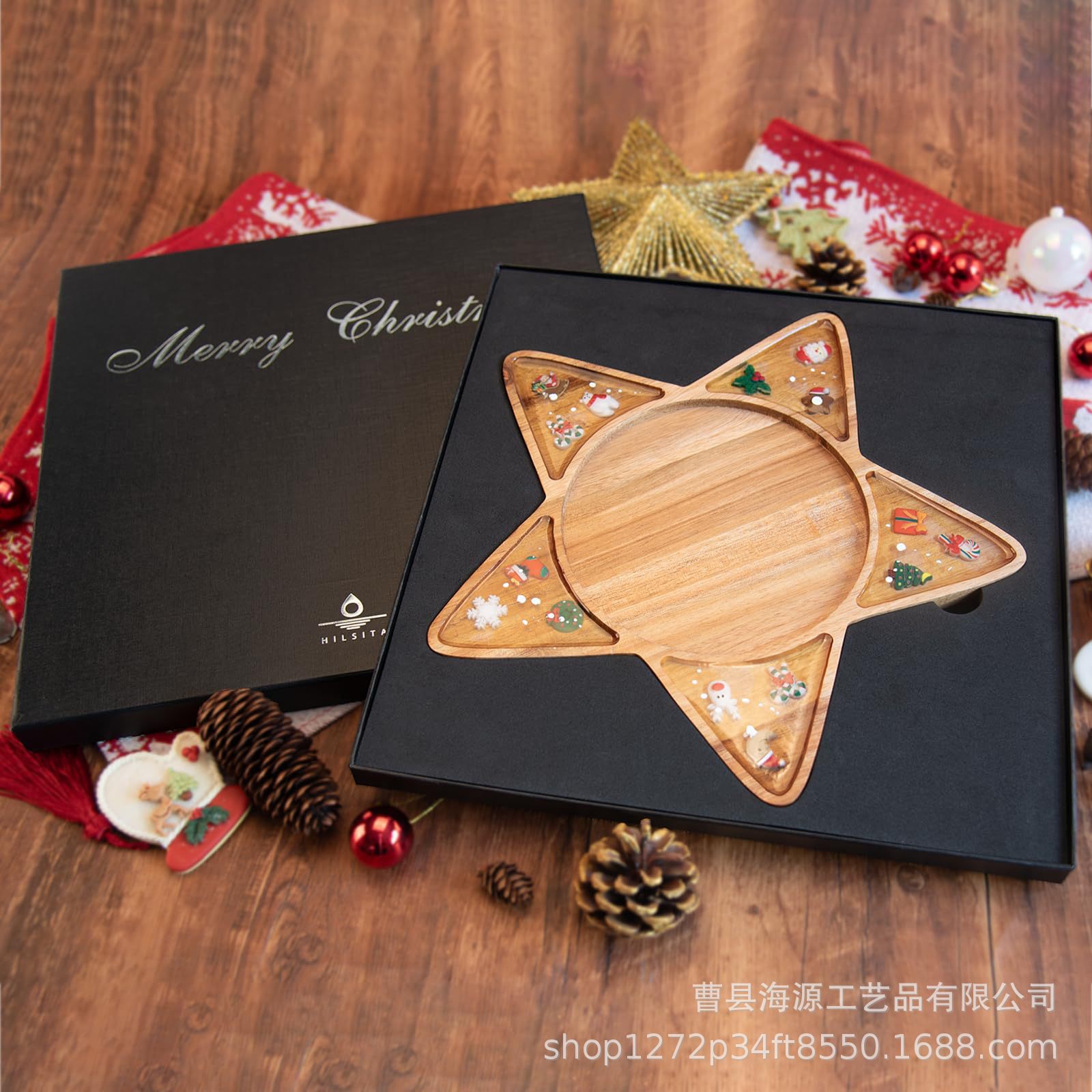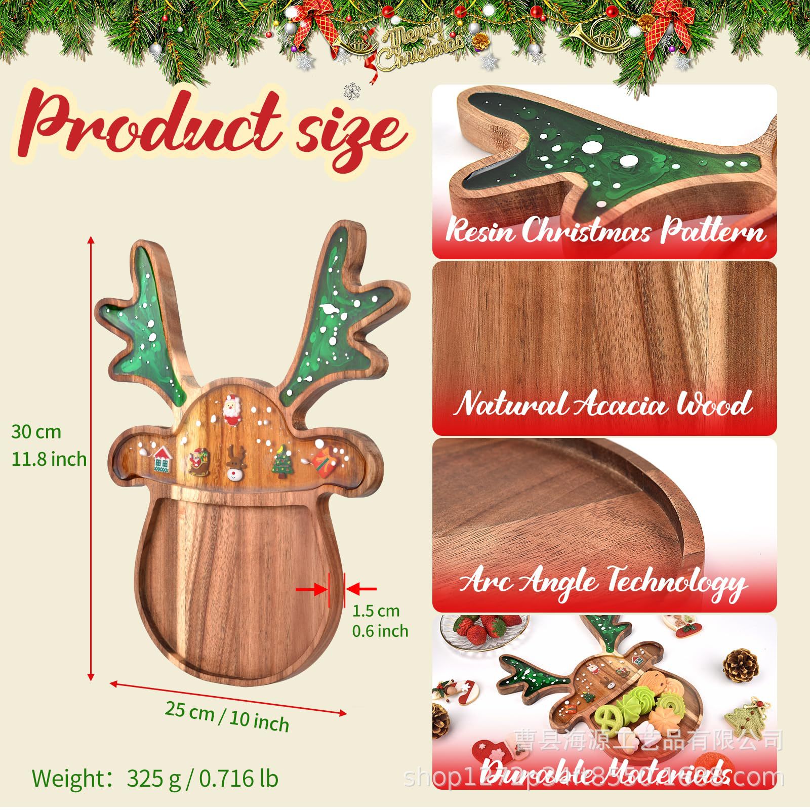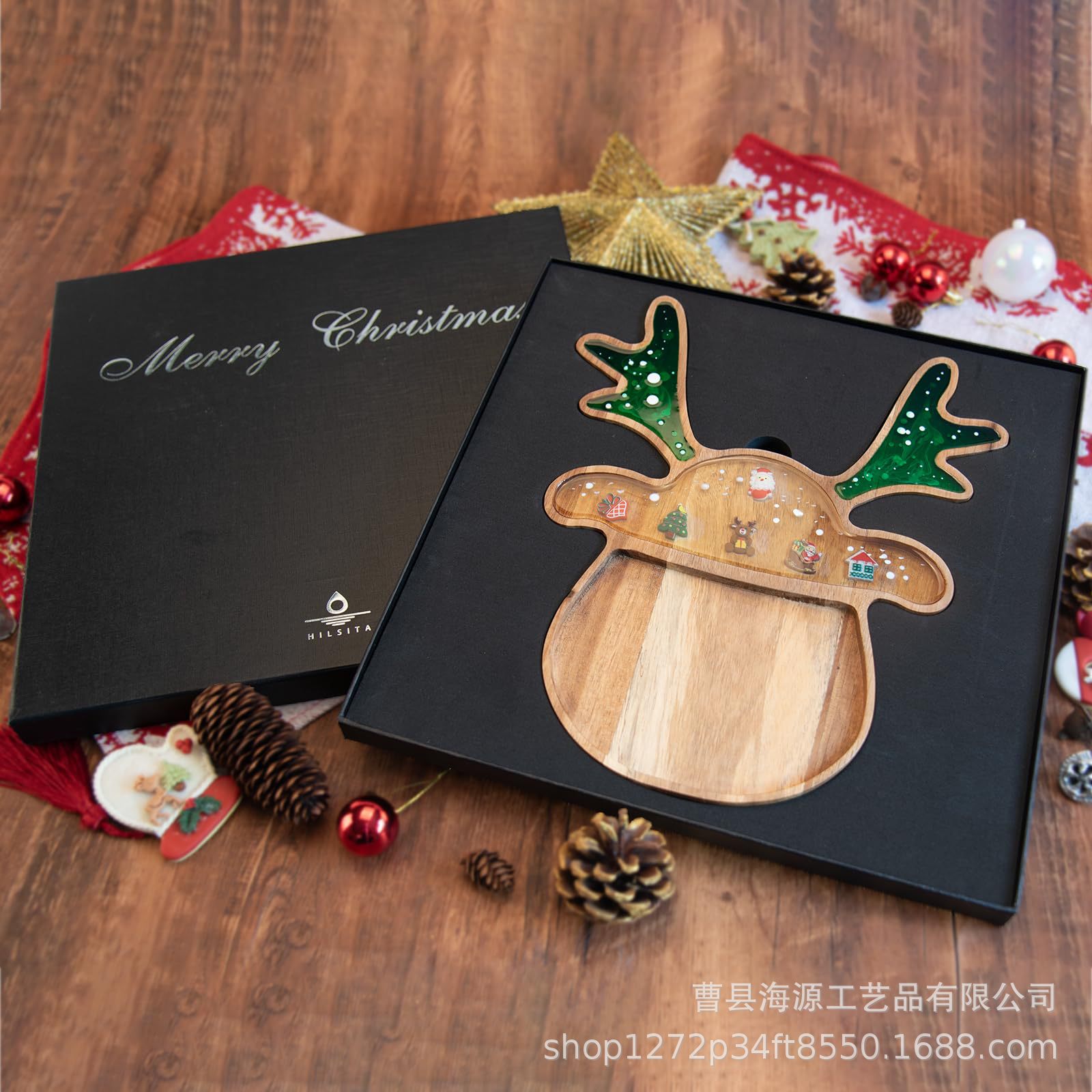 국경 간 목조 크리스마스 장식 접시 단단한 나무 크리스마스 트리 모양의 나무 트레이 아카시아 나무 나무 스낵 접시