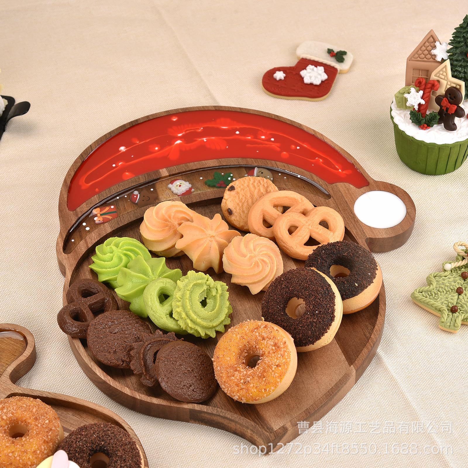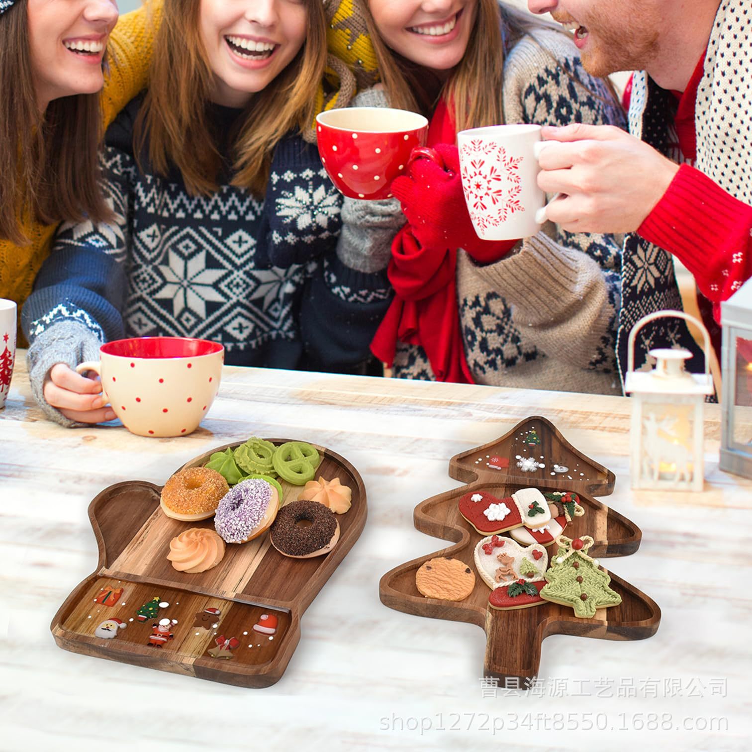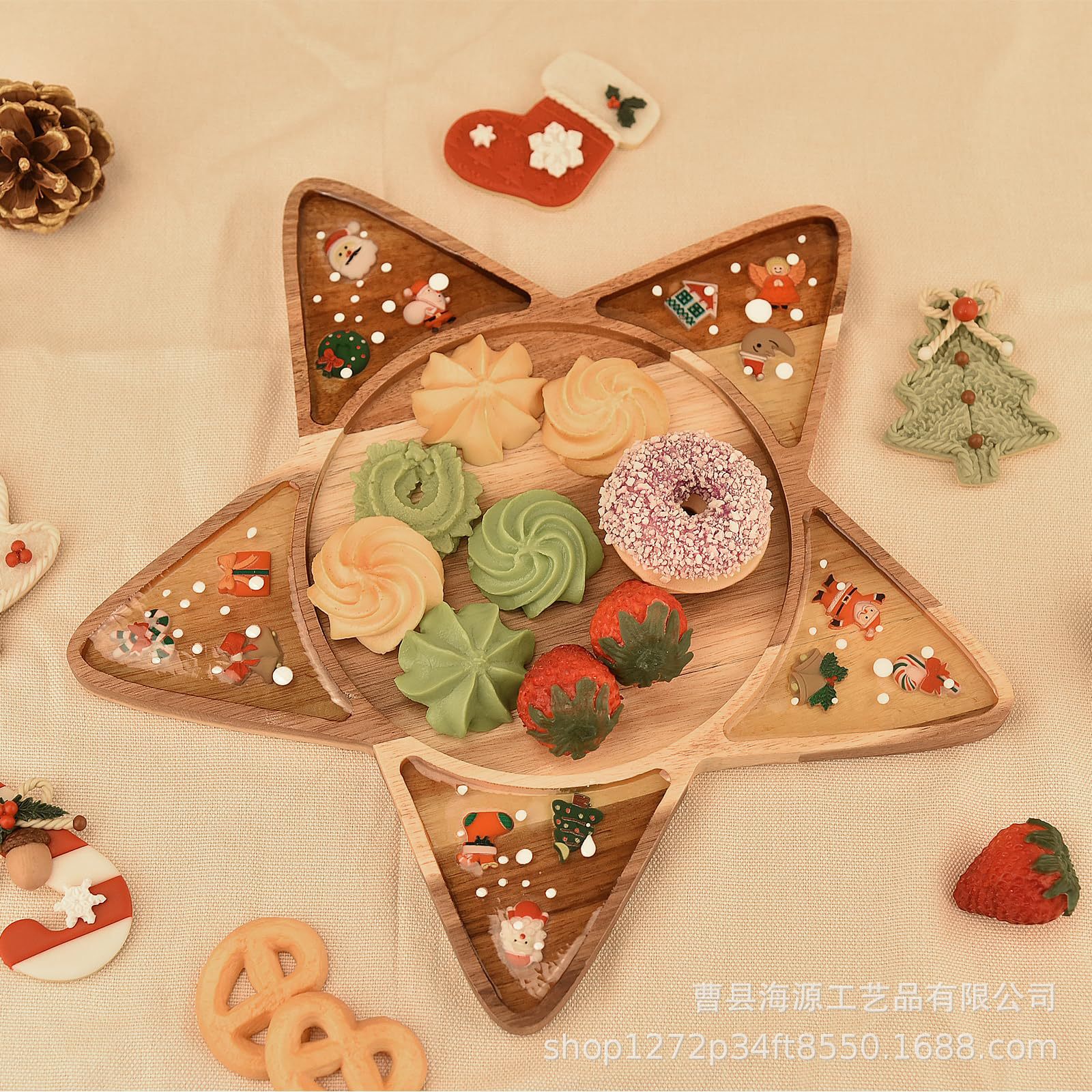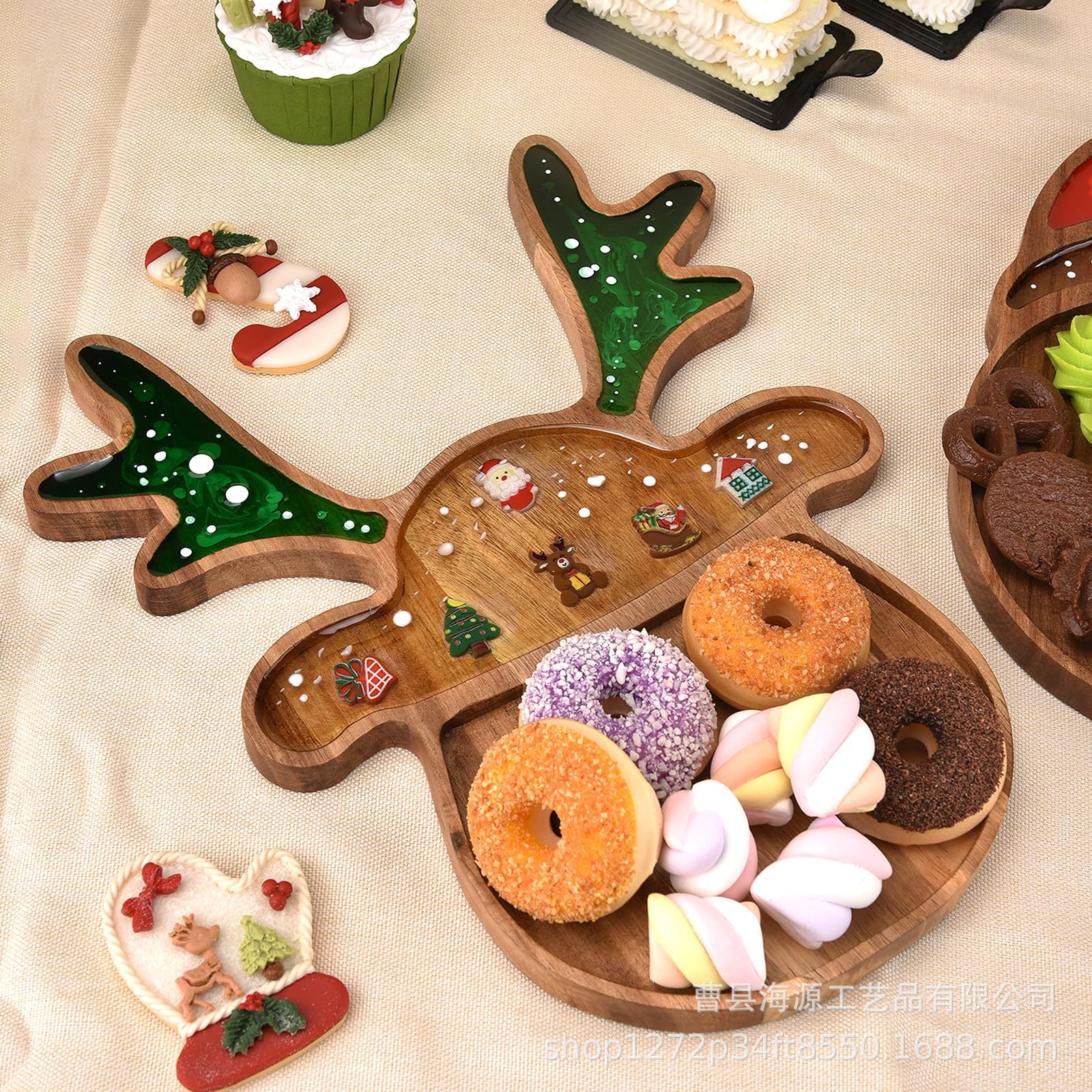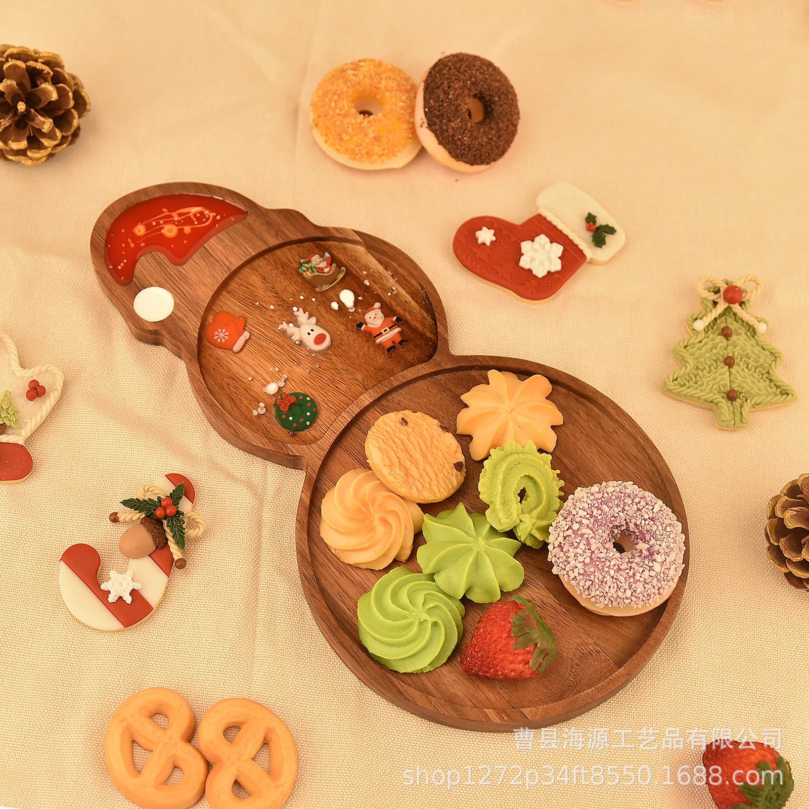 국경 간 목조 크리스마스 장식 접시 단단한 나무 크리스마스 트리 모양의 나무 트레이 아카시아 나무 나무 스낵 접시