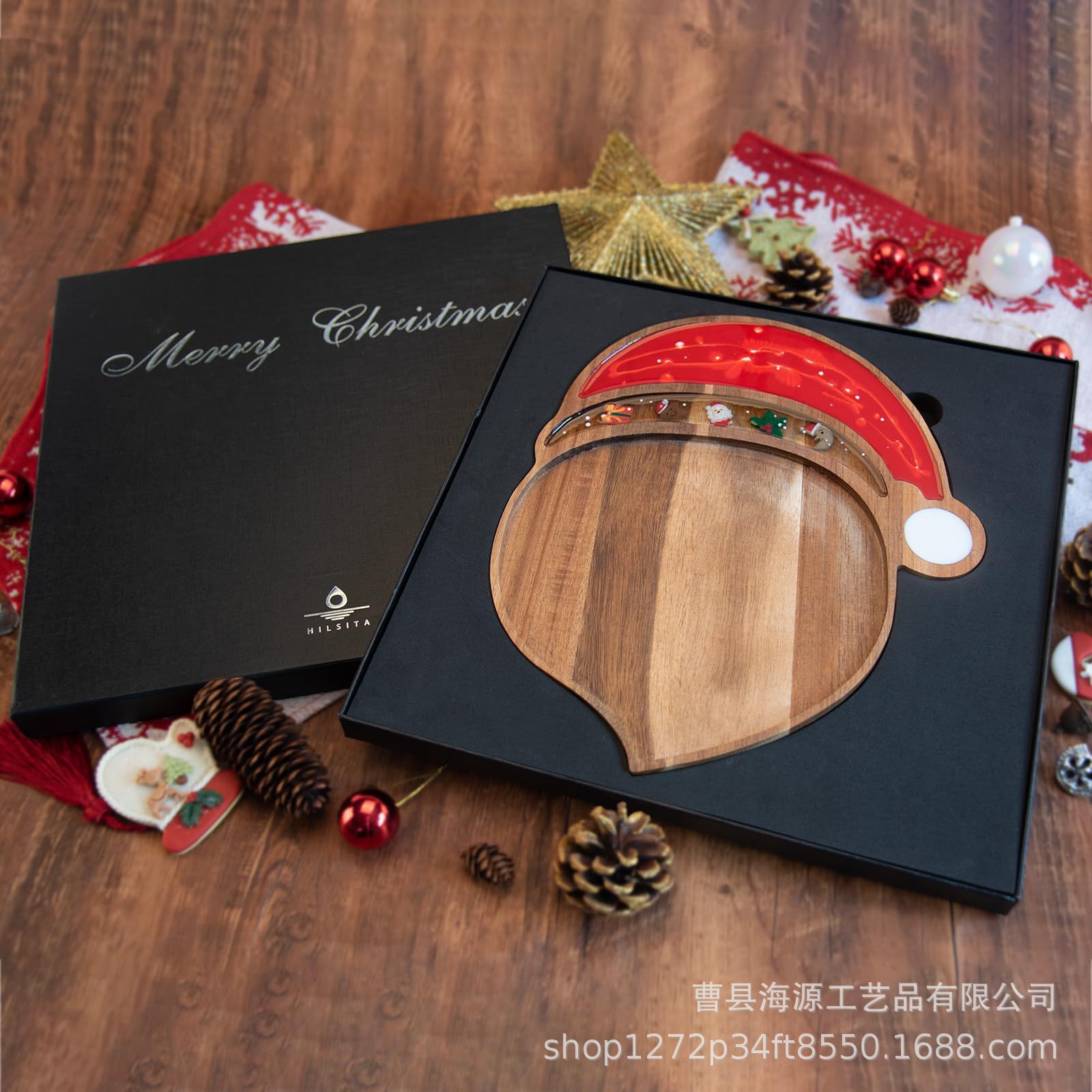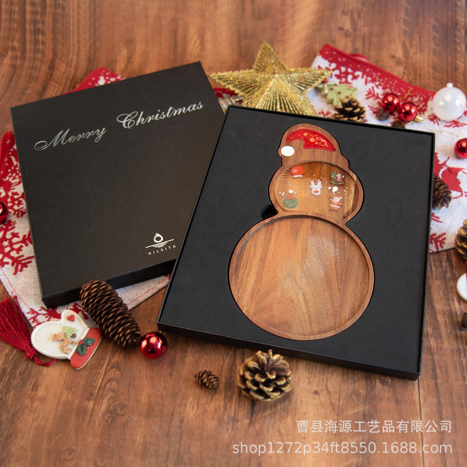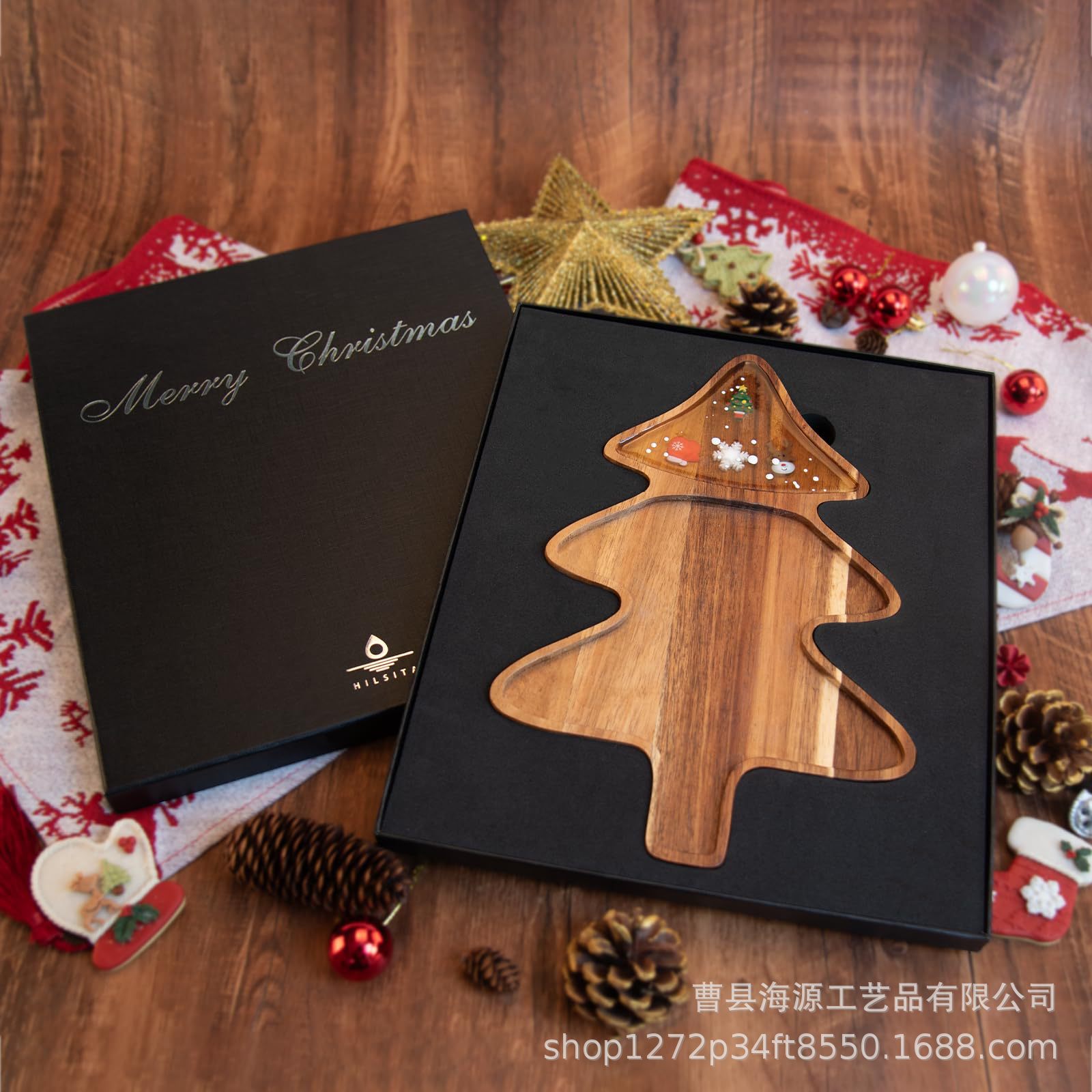 국경 간 목조 크리스마스 장식 접시 단단한 나무 크리스마스 트리 모양의 나무 트레이 아카시아 나무 나무 스낵 접시스토어 가기