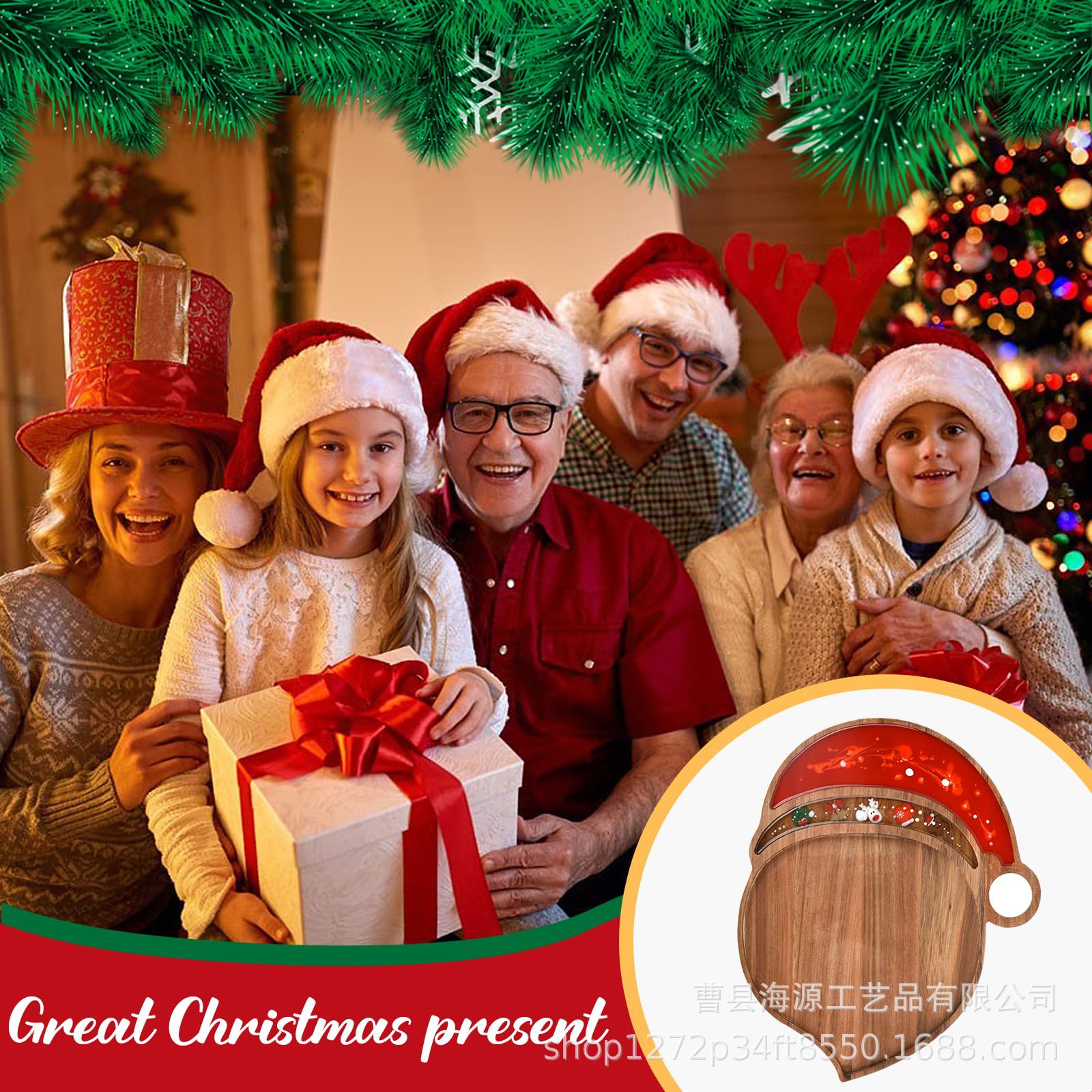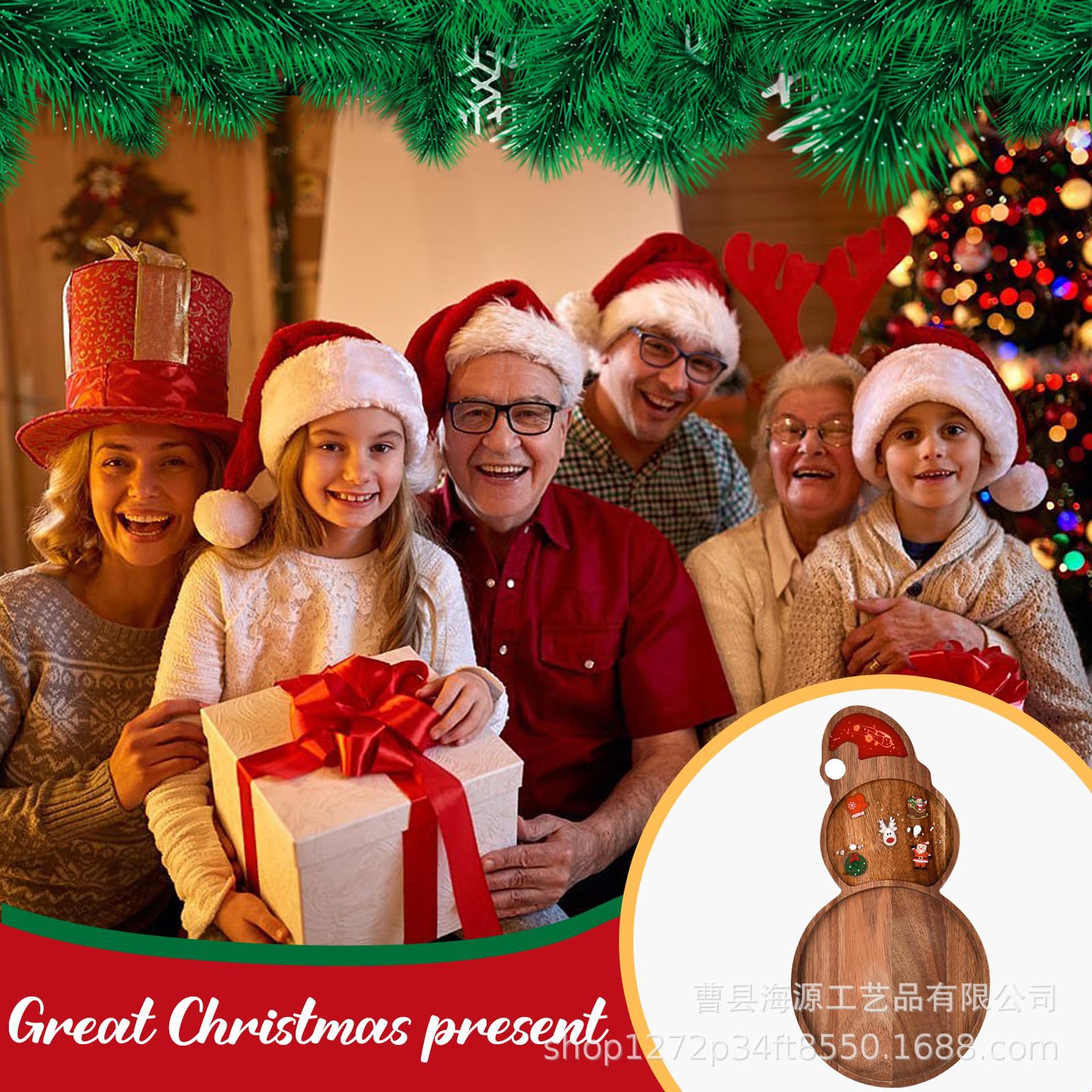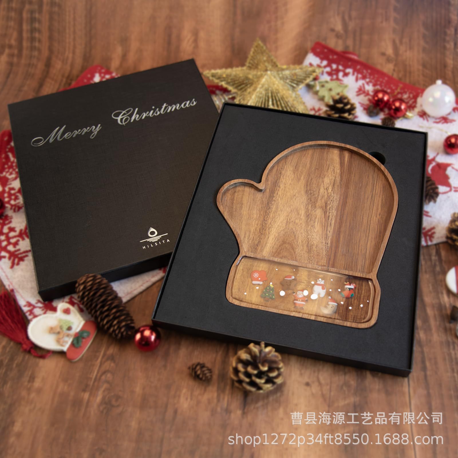 국경 간 목조 크리스마스 장식 접시 단단한 나무 크리스마스 트리 모양의 나무 트레이 아카시아 나무 나무 스낵 접시스토어 가기