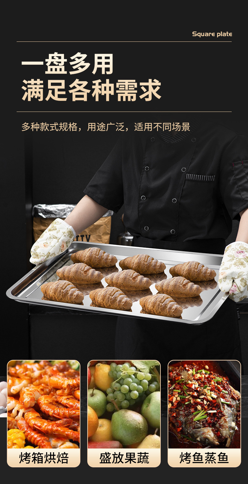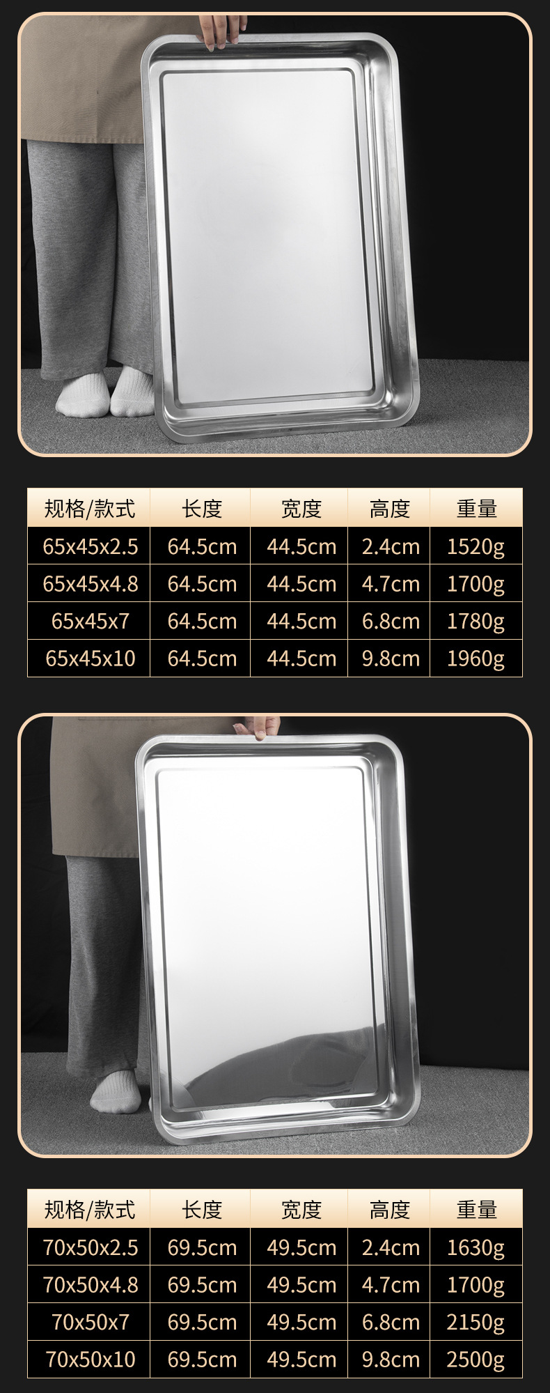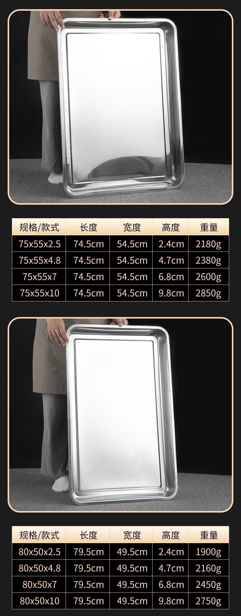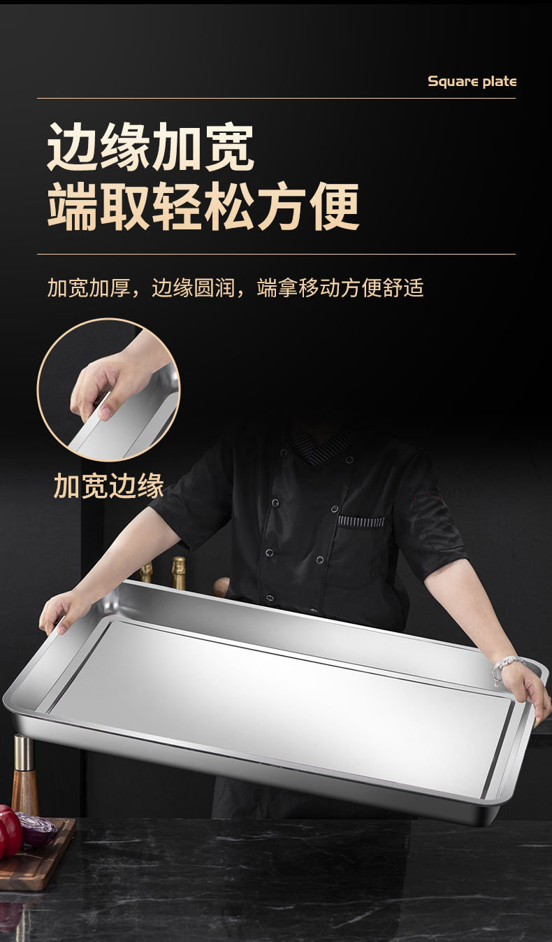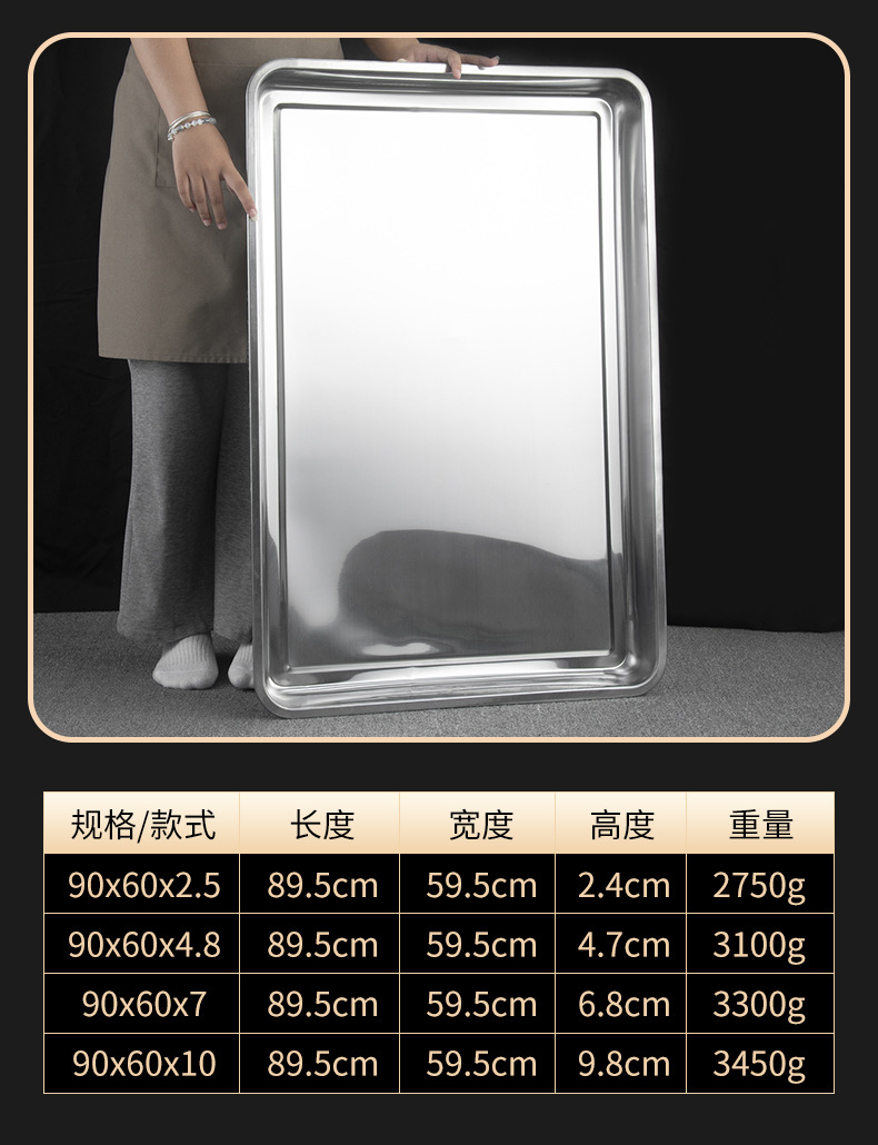 Wow 맞춤형 초대형 스테인레스 스틸 사각형 접시 준비 접시 직사각형 트레이 상업용 스테인레스 스틸 접시 60 찐 밥 접시
