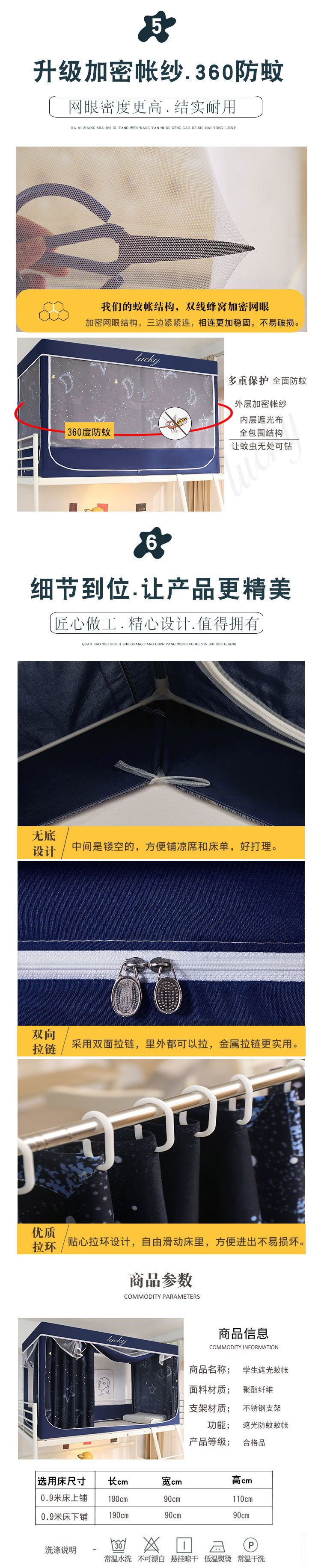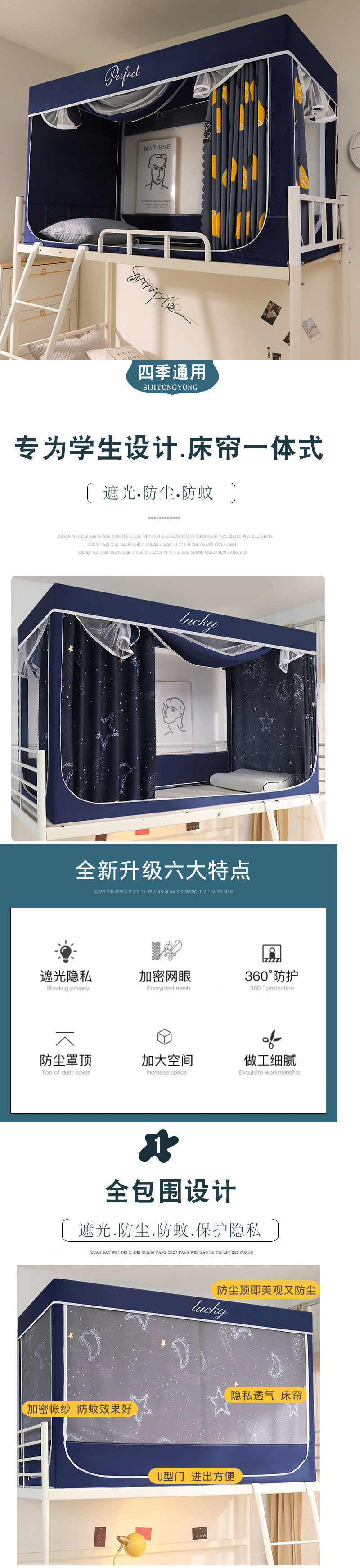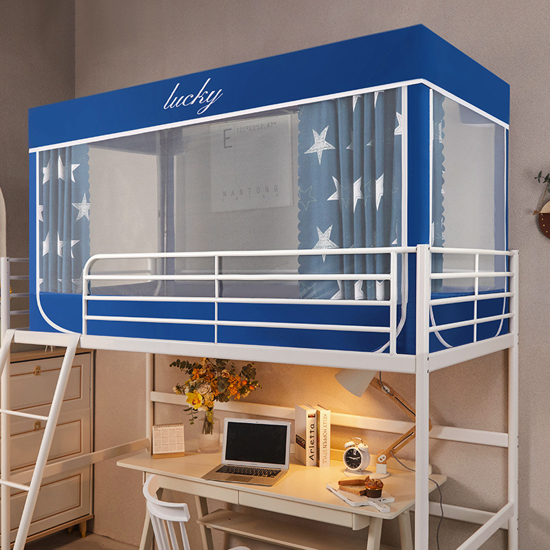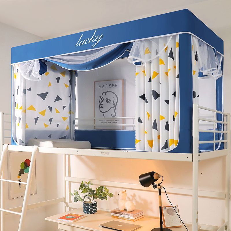 학생 기숙사 모기장 및 침대 커튼 일체형 홈 기숙사 싱글 침대 이층 침대 3개의 문이 있는 하단 침대 차광 및 모기 방지스토어 가기