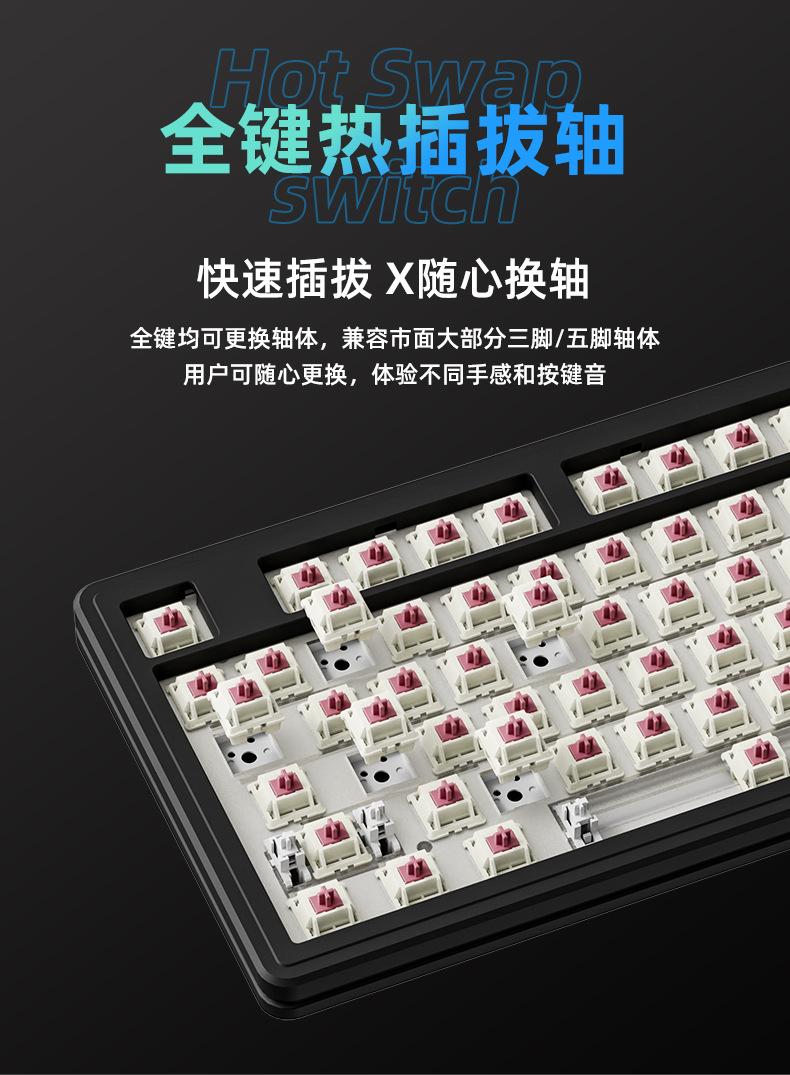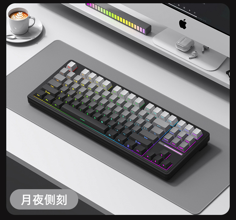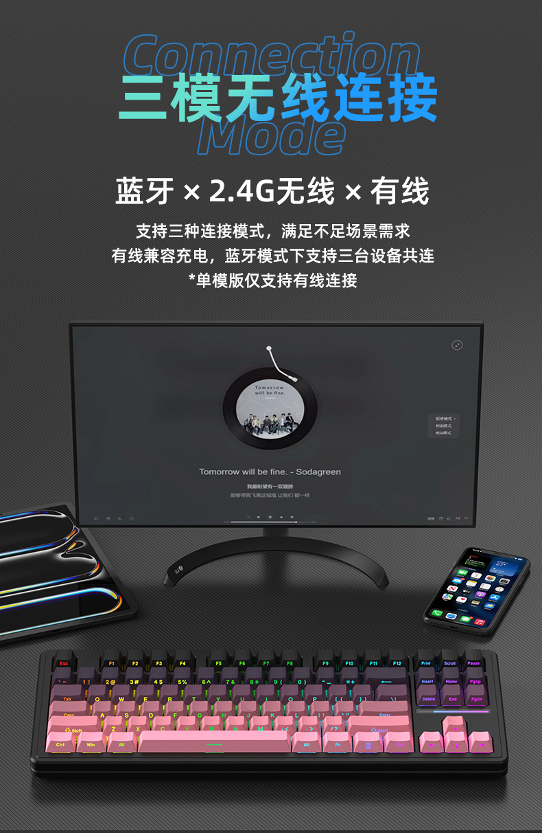 3모드 기계식 키보드 Bluetooth 무선 측면 새겨진 무음 복숭아 축 맞춤형 마작 사운드