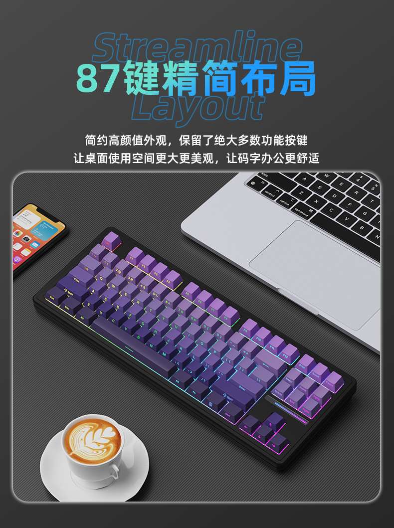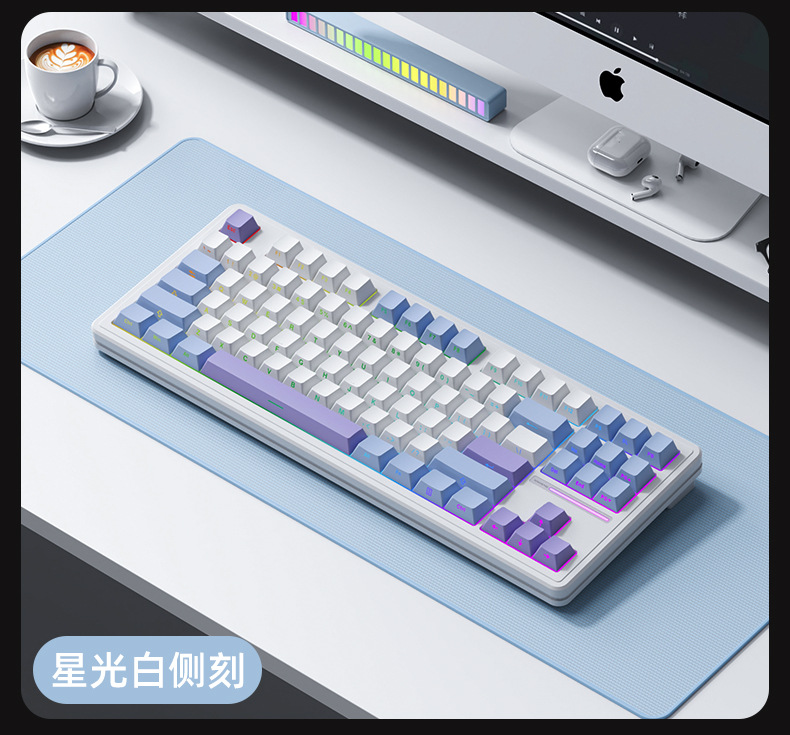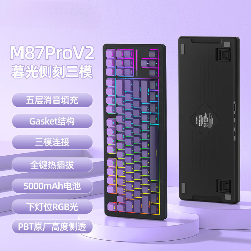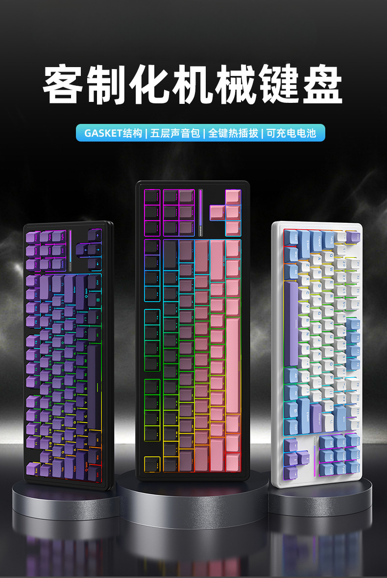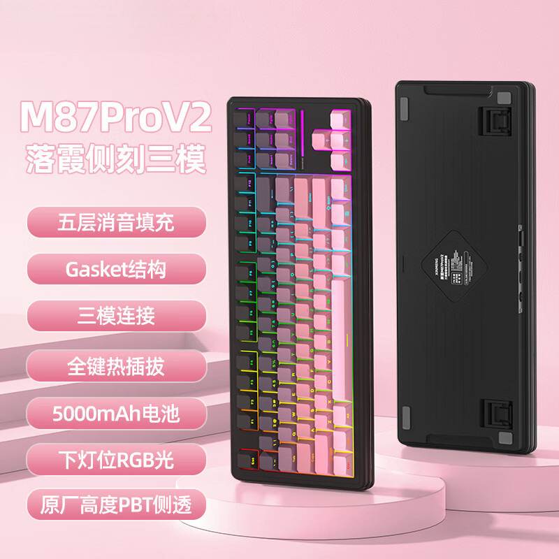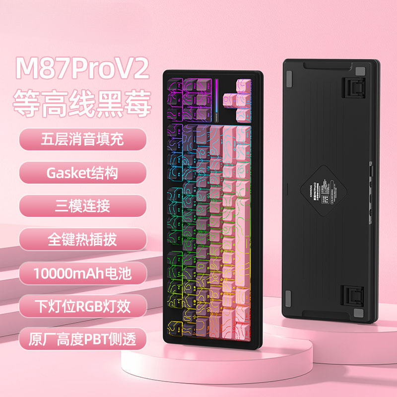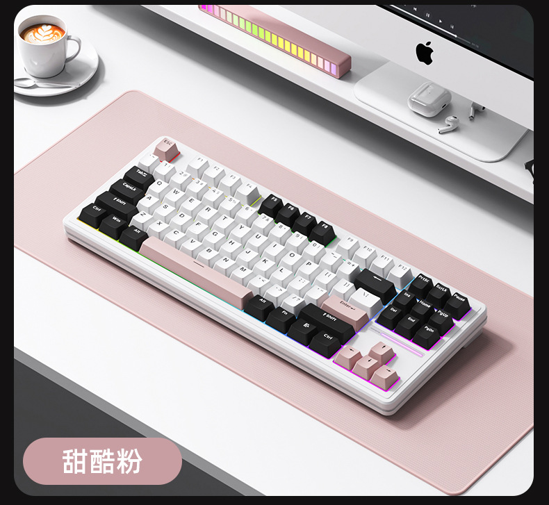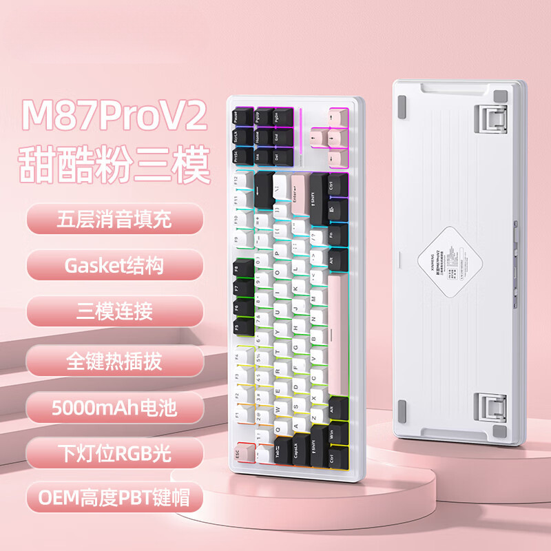 3모드 기계식 키보드 Bluetooth 무선 측면 새겨진 무음 복숭아 축 맞춤형 마작 사운드스토어 가기