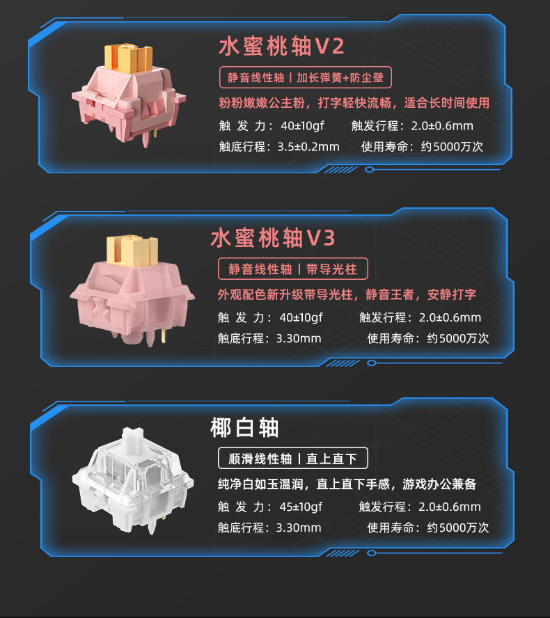 • Luoxia 세 가지 모드-RGB-peach V3 무소음 축