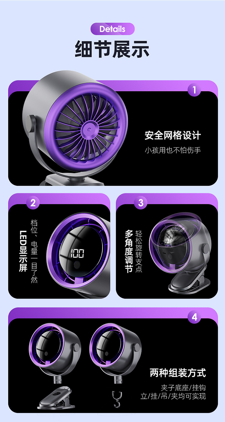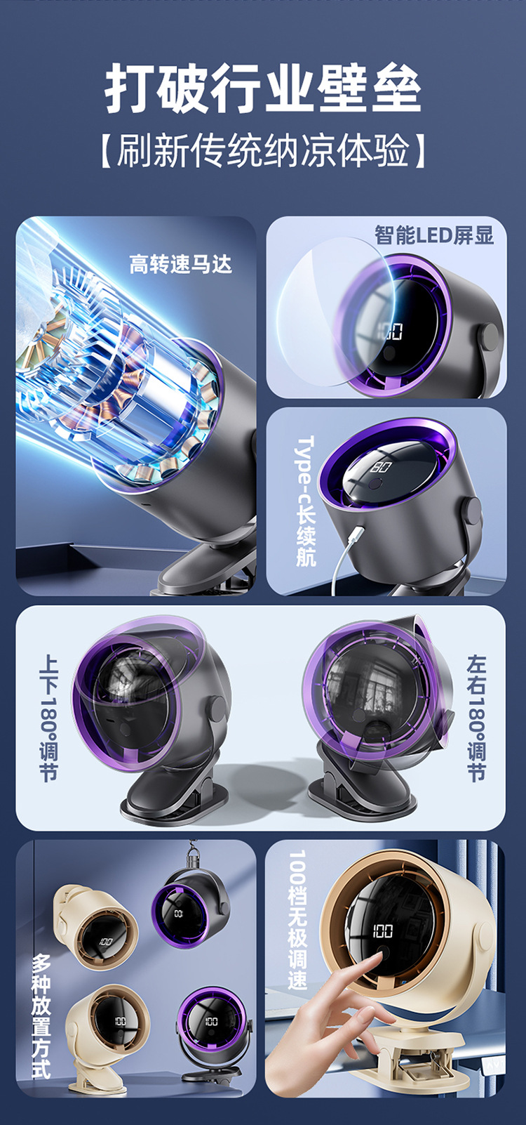 2025 새로운 데스크탑 팬 순환 팬 usb 기숙사 사무실 100 단계 지능형 디지털 디스플레이 벽걸이 형 소형 팬