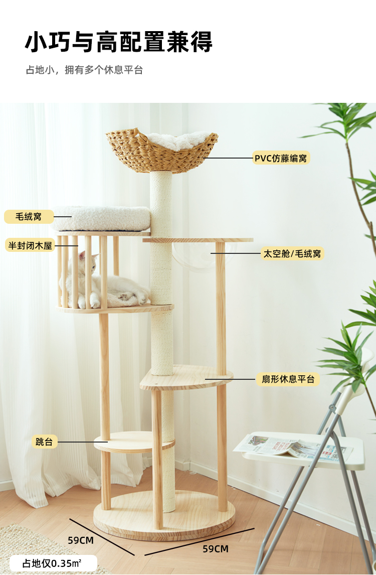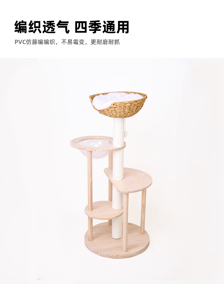 UHomePets 자유 타워 단단한 나무 고양이 클라이밍 프레임 발톱 연삭 통합 여름 고양이 프레임 고양이 장난감 작은 아파트 등나무