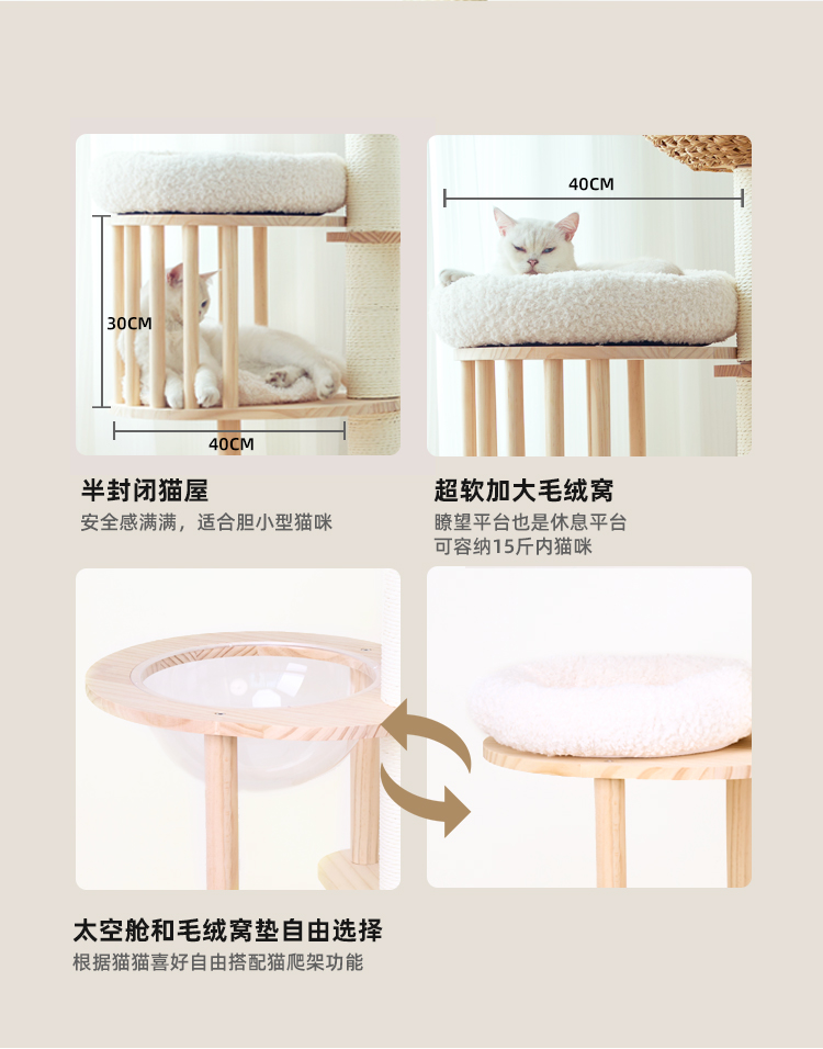 UHomePets 자유 타워 단단한 나무 고양이 클라이밍 프레임 발톱 연삭 통합 여름 고양이 프레임 고양이 장난감 작은 아파트 등나무스토어 가기