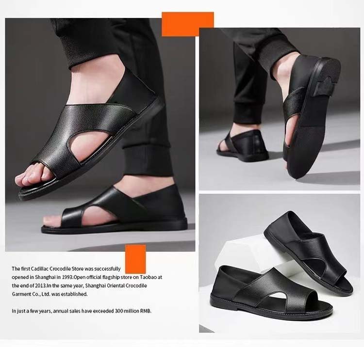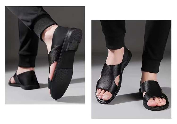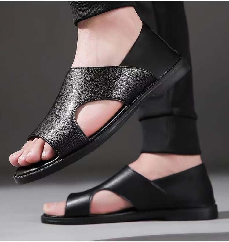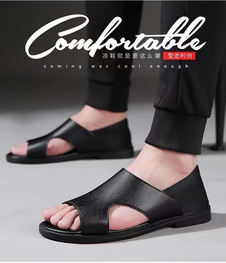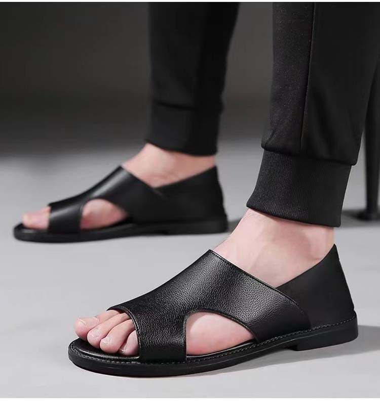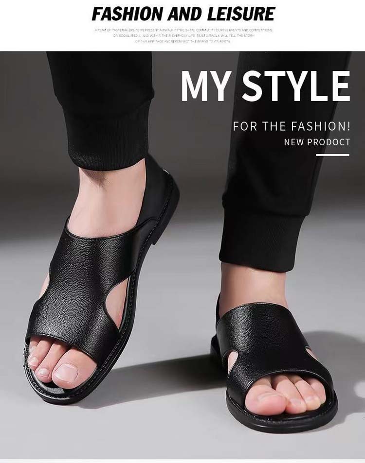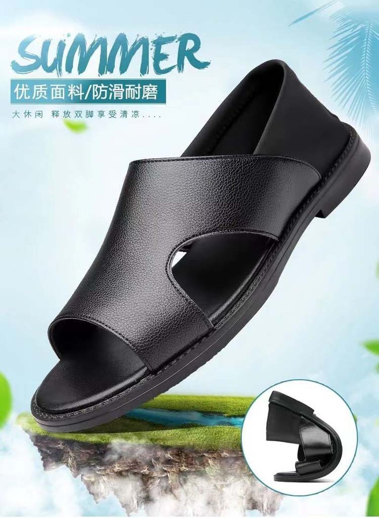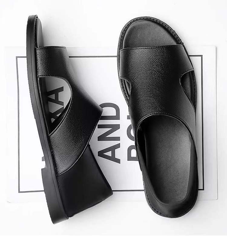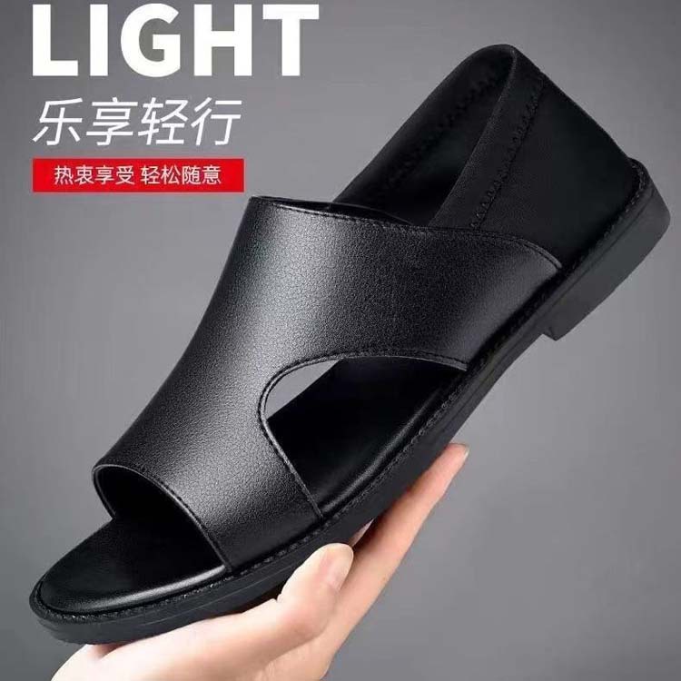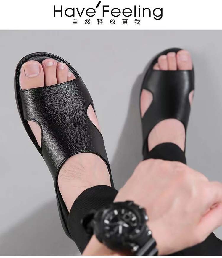 Fulin 샌들 남성 인터넷 연예인 인기 샌들 여름 남성 부드러운 밑창 가죽 비치 신발 슬립 온 아빠 신발스토어 가기
