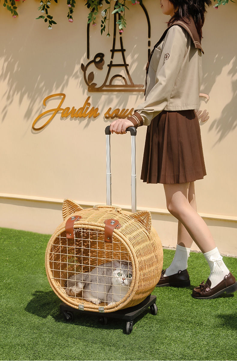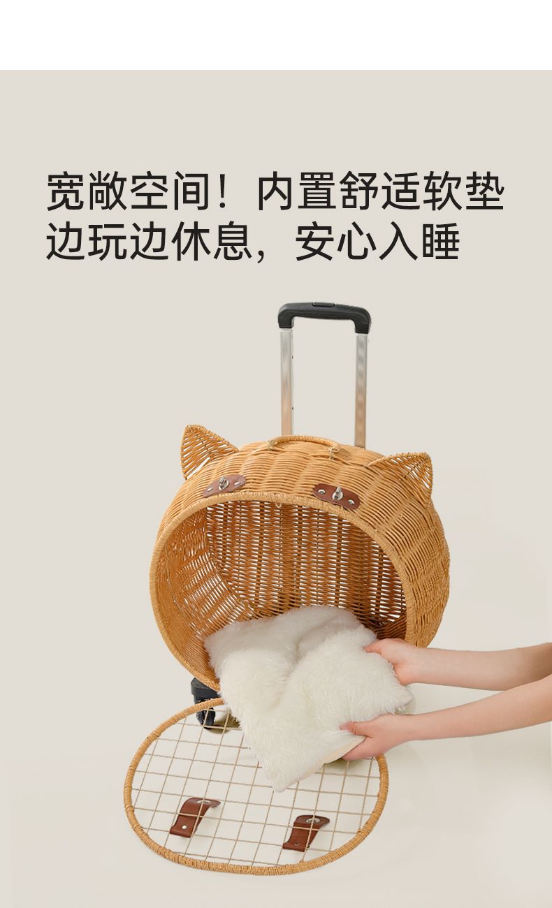 등나무 고양이 트롤리 케이스, 고양이 가방, 고양이 우주 캡슐, 애완동물 외출 휴대용 가방, 고양이 유모차, 대용량스토어 가기