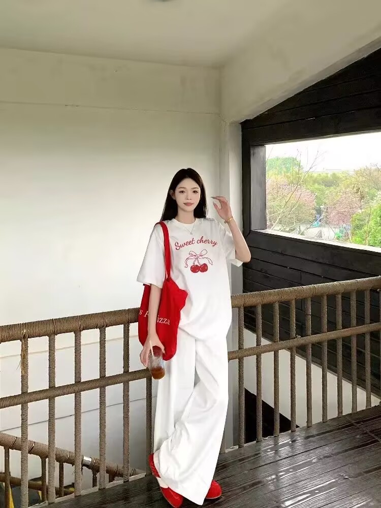 화이트 코튼 반팔 오른쪽 어깨 여성 티셔츠 트렌디 브랜드 여름 신작 루즈한 대형 탑 디자인 틈새 여성 배치스토어 가기