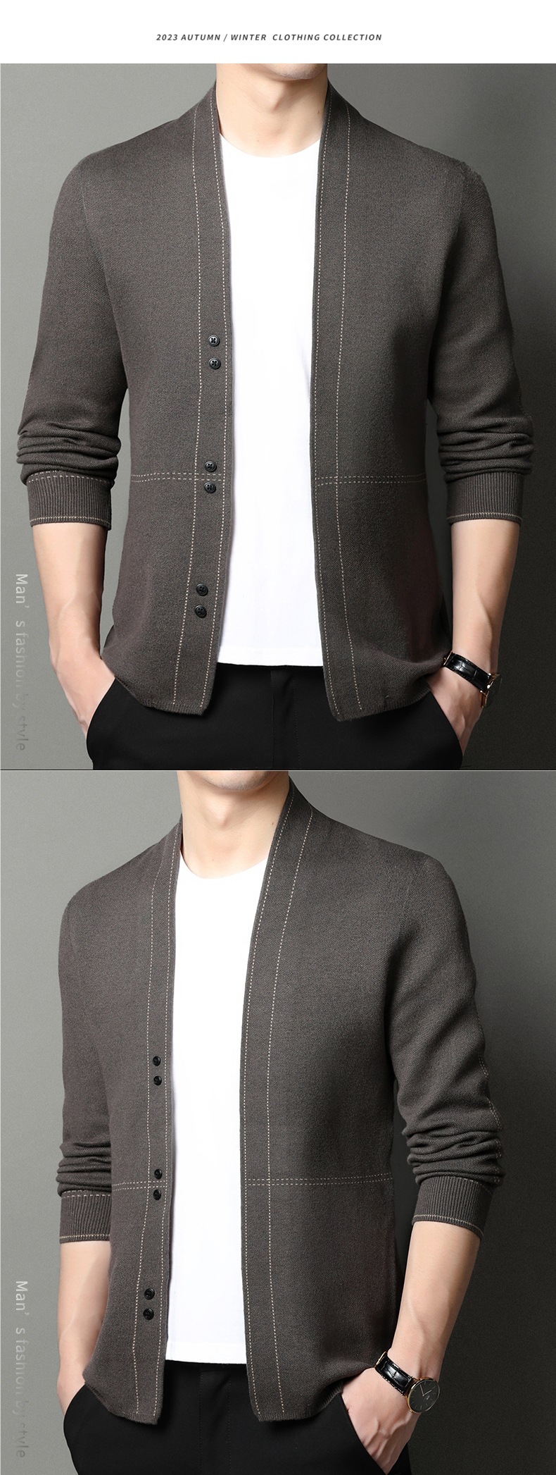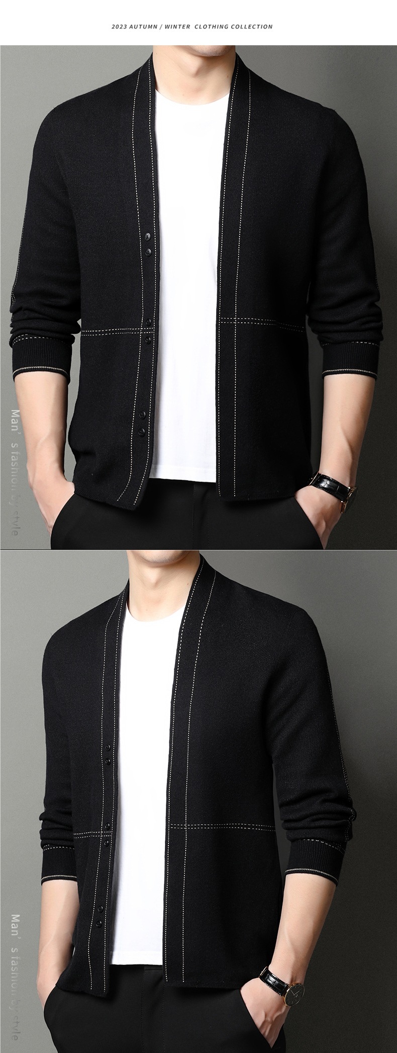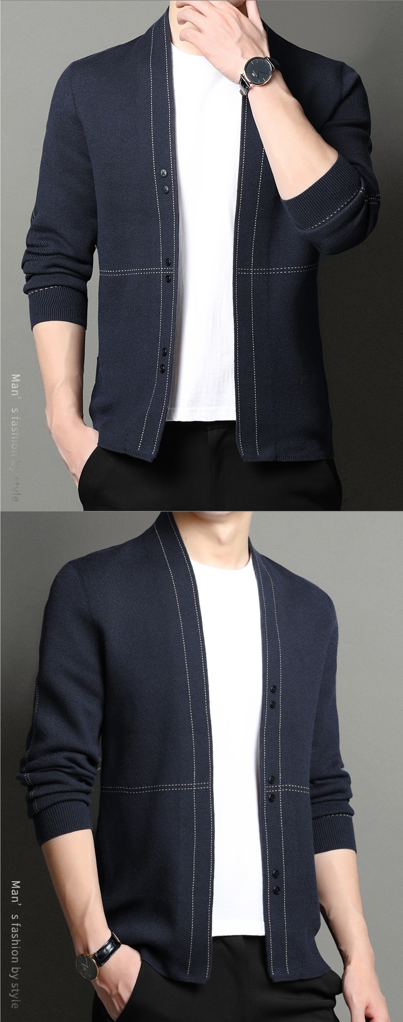 남성용 봄가을 긴팔 스웨터 니트웨어 두꺼운 혼방 울 가디건 가을옷 패션 슬림핏 V넥스토어 가기