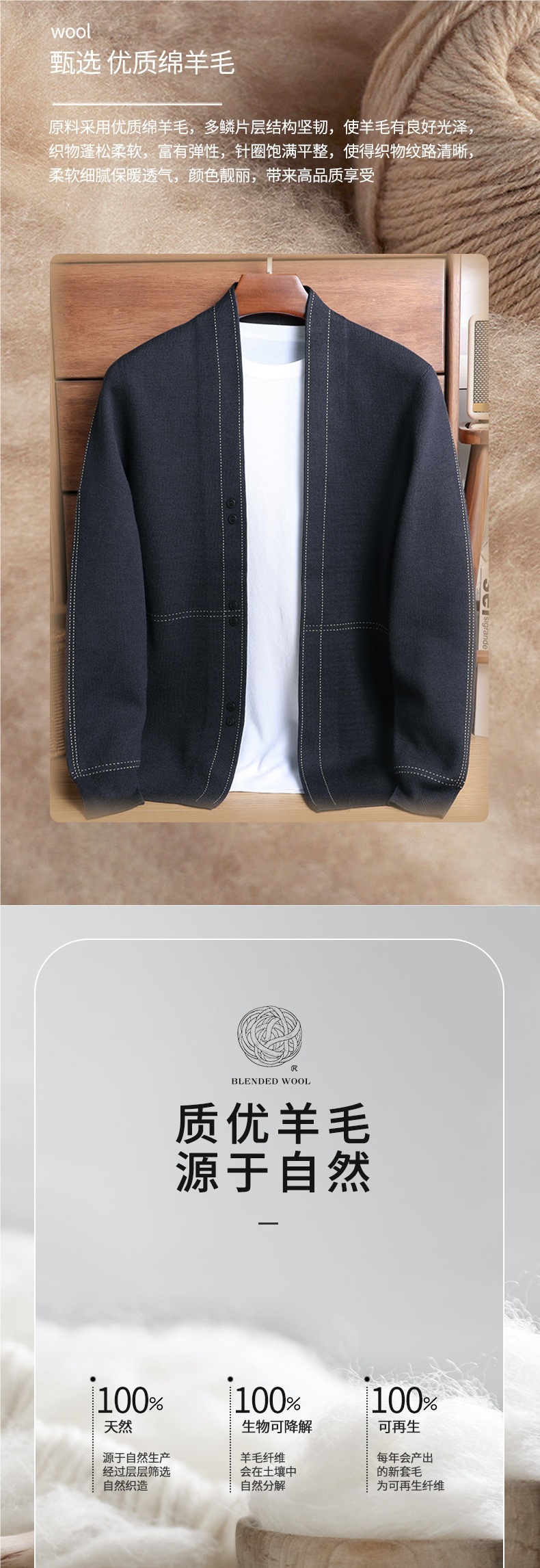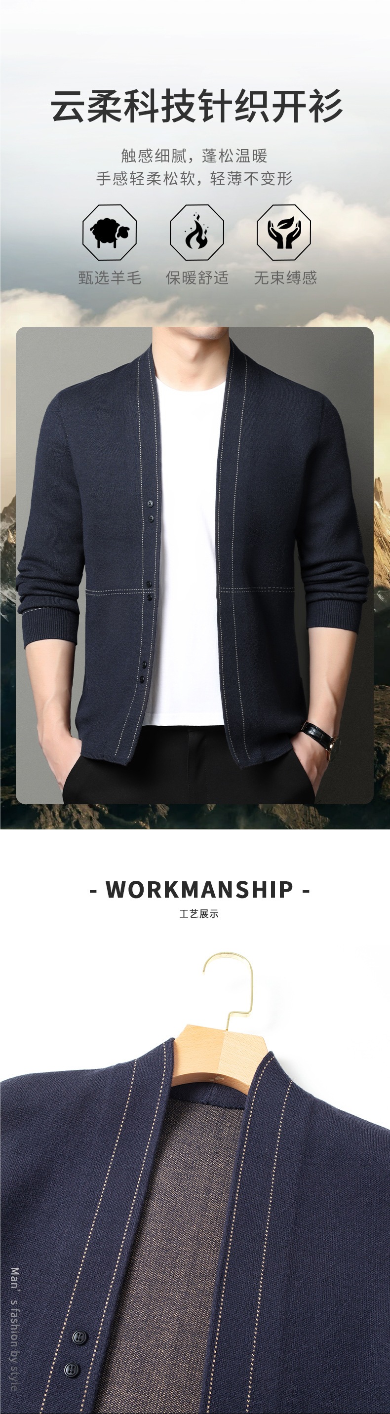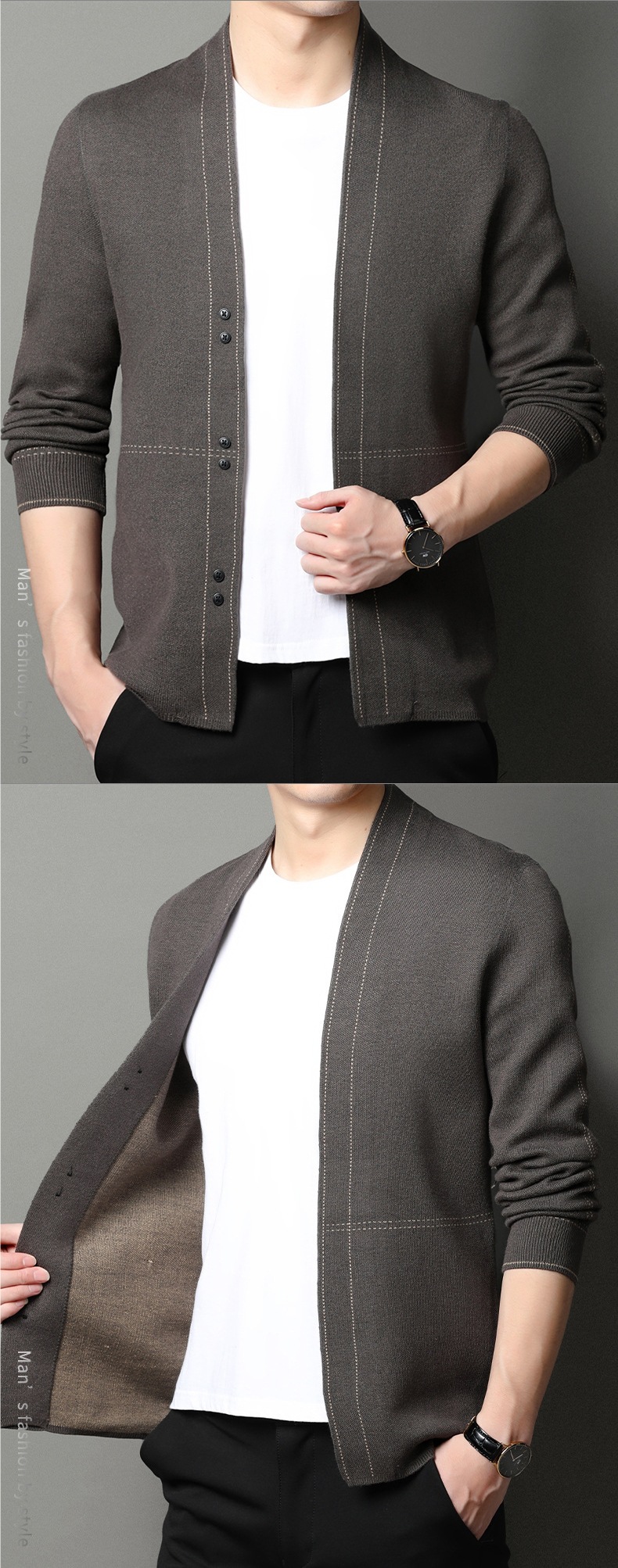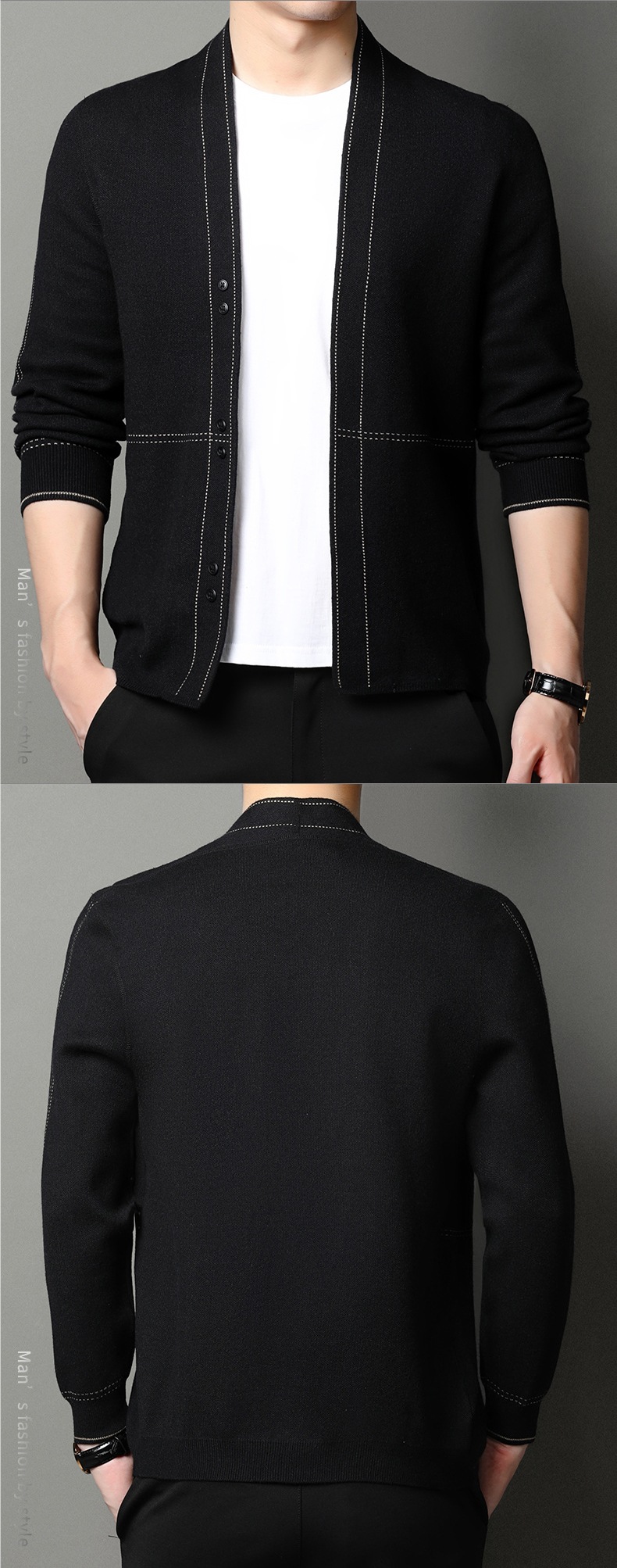 남성용 봄가을 긴팔 스웨터 니트웨어 두꺼운 혼방 울 가디건 가을옷 패션 슬림핏 V넥스토어 가기
