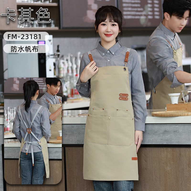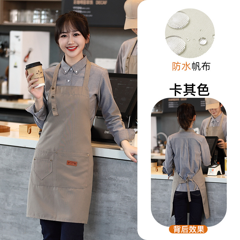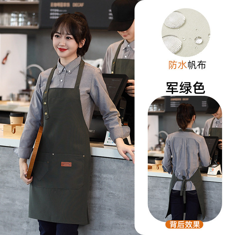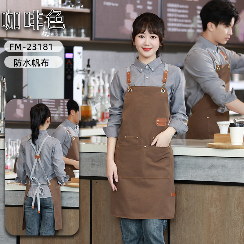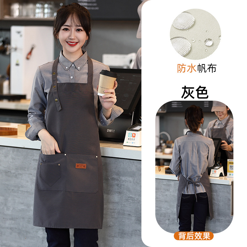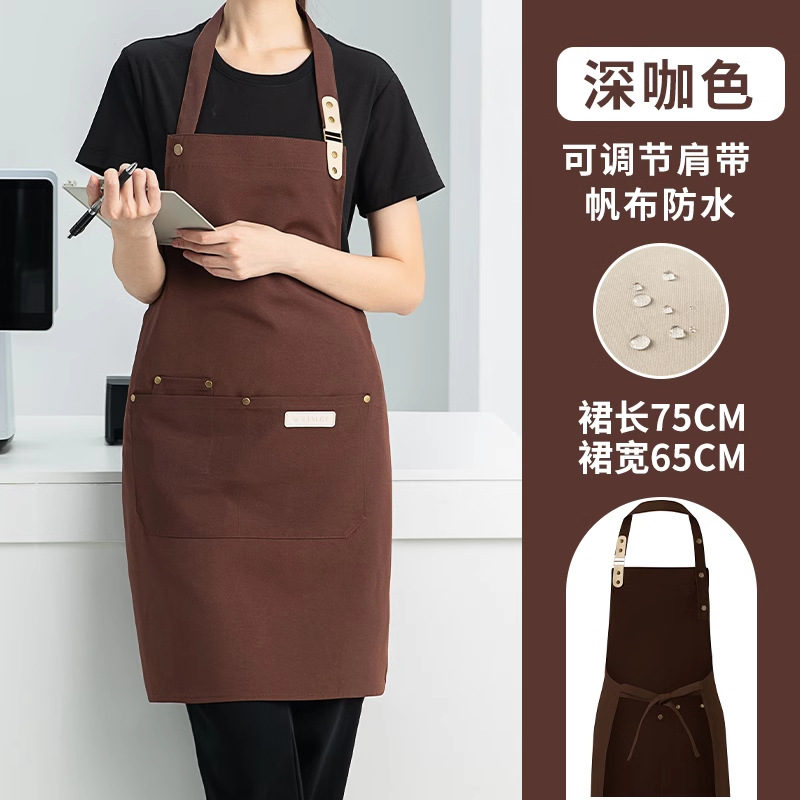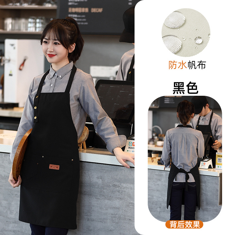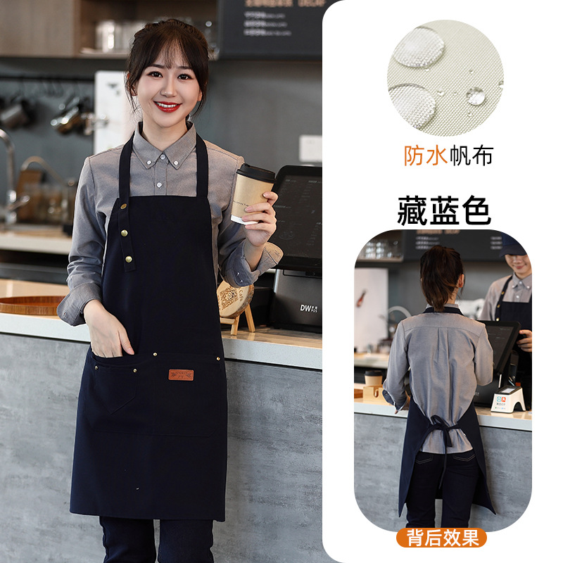캔버스 앞치마 작업복 맞춤형 로고 인쇄 케이터링 밀크티 커피 숍 웨이터 여성용 방수 앞치마