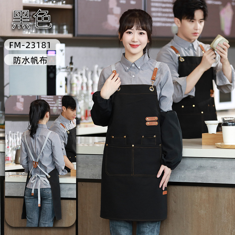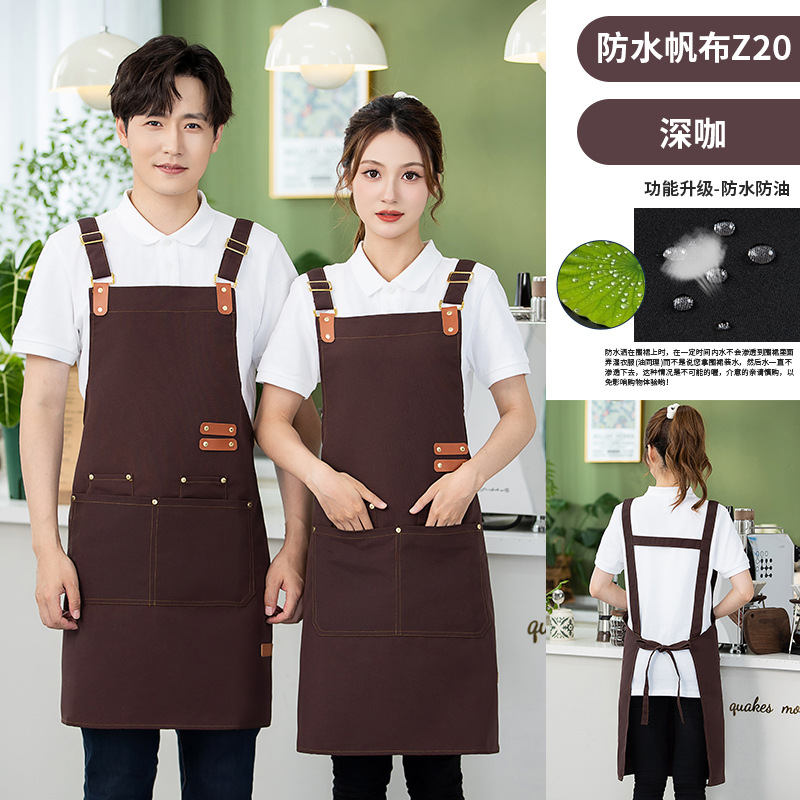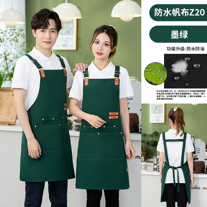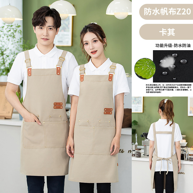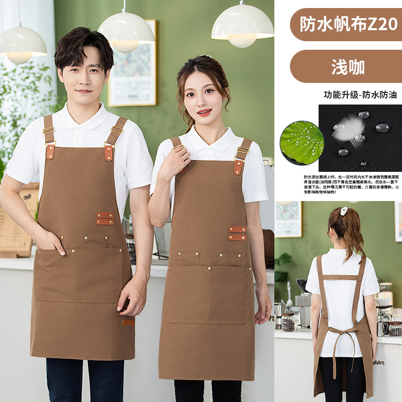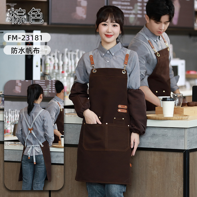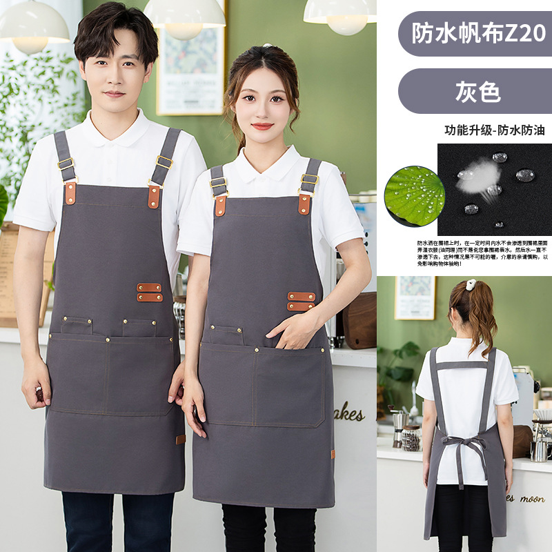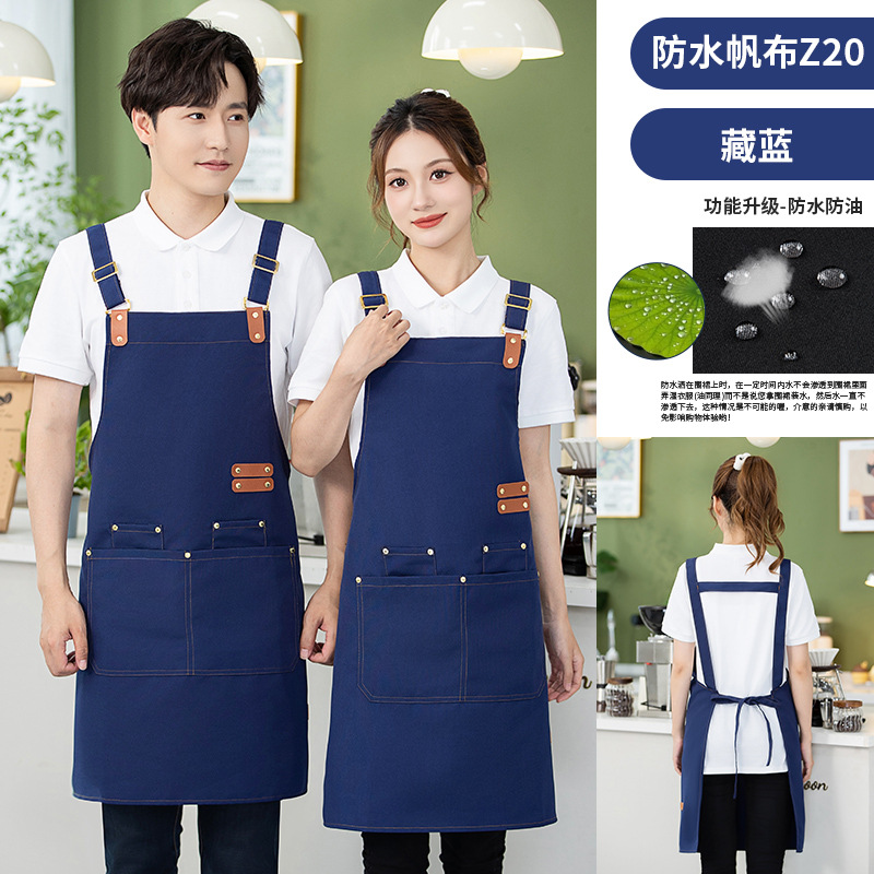 캔버스 앞치마 작업복 맞춤형 로고 인쇄 케이터링 밀크티 커피 숍 웨이터 여성용 방수 앞치마