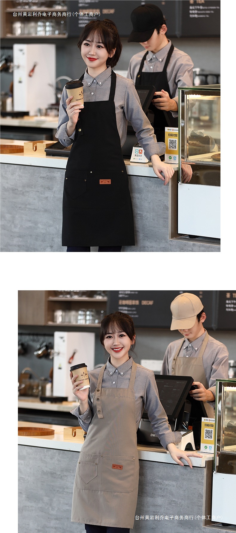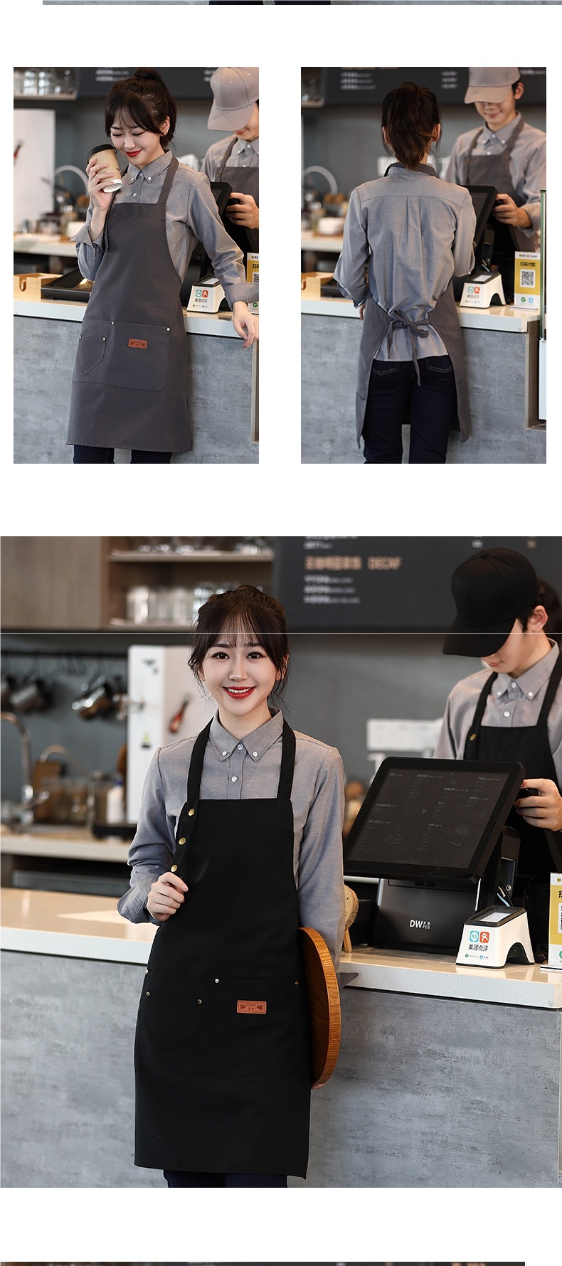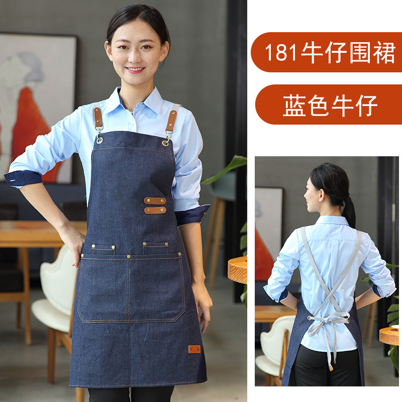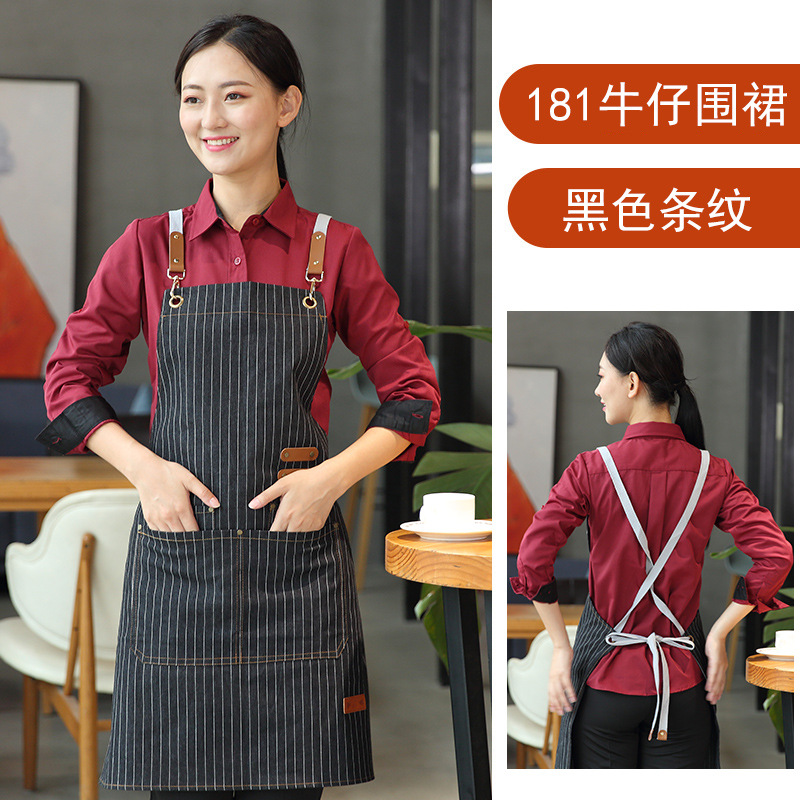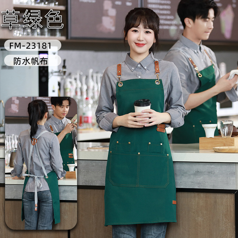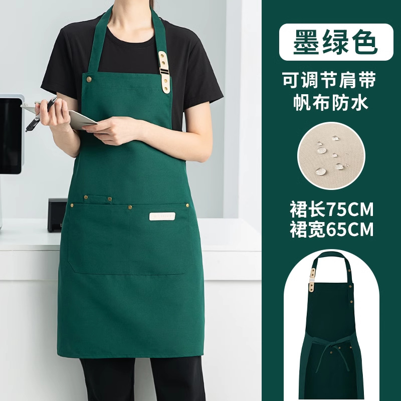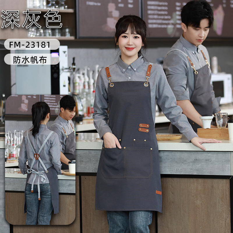 캔버스 앞치마 작업복 맞춤형 로고 인쇄 케이터링 밀크티 커피 숍 웨이터 여성용 방수 앞치마