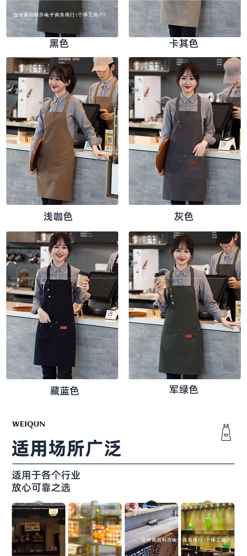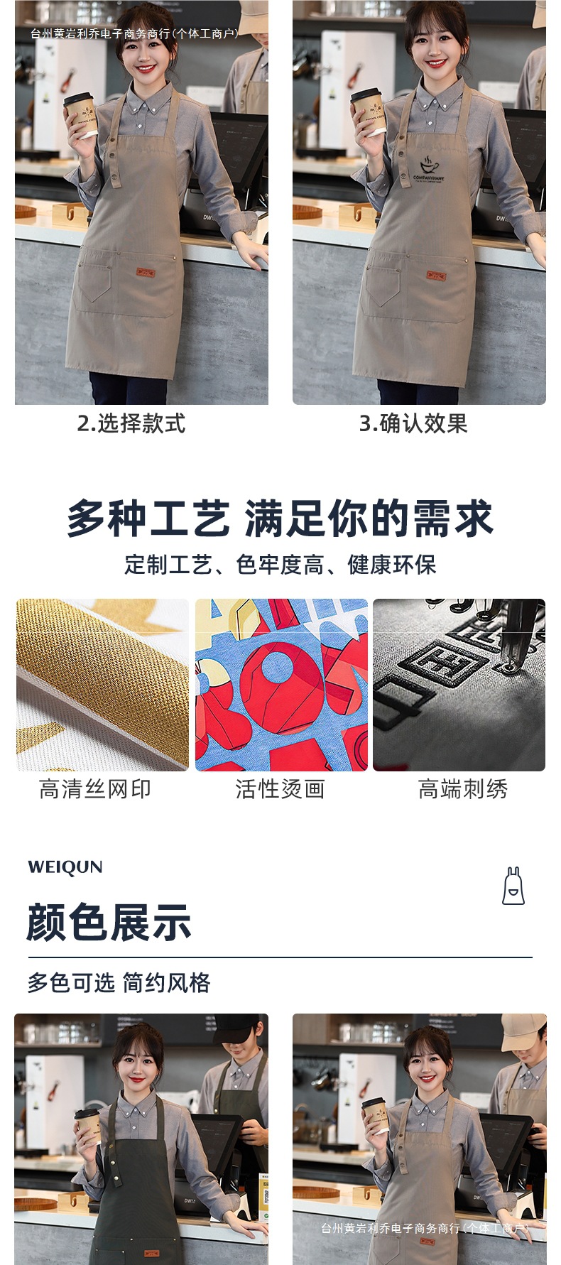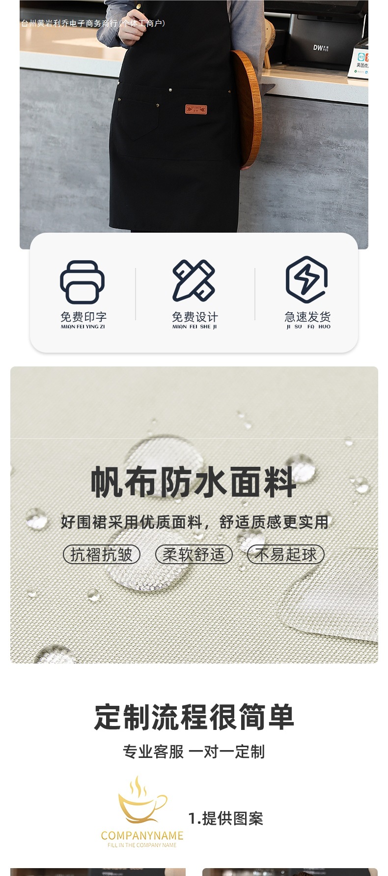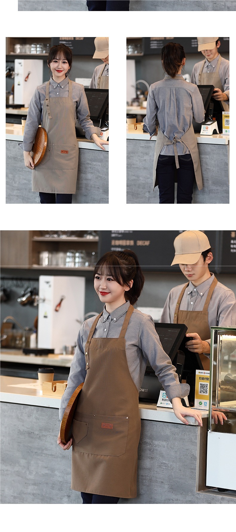 캔버스 앞치마 작업복 맞춤형 로고 인쇄 케이터링 밀크티 커피 숍 웨이터 여성용 방수 앞치마
