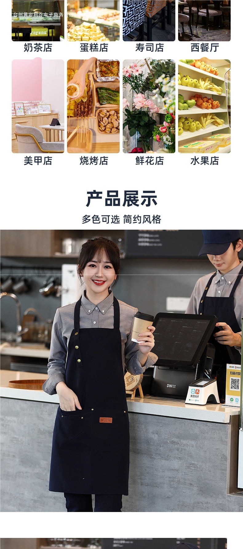 캔버스 앞치마 작업복 맞춤형 로고 인쇄 케이터링 밀크티 커피 숍 웨이터 여성용 방수 앞치마스토어 가기