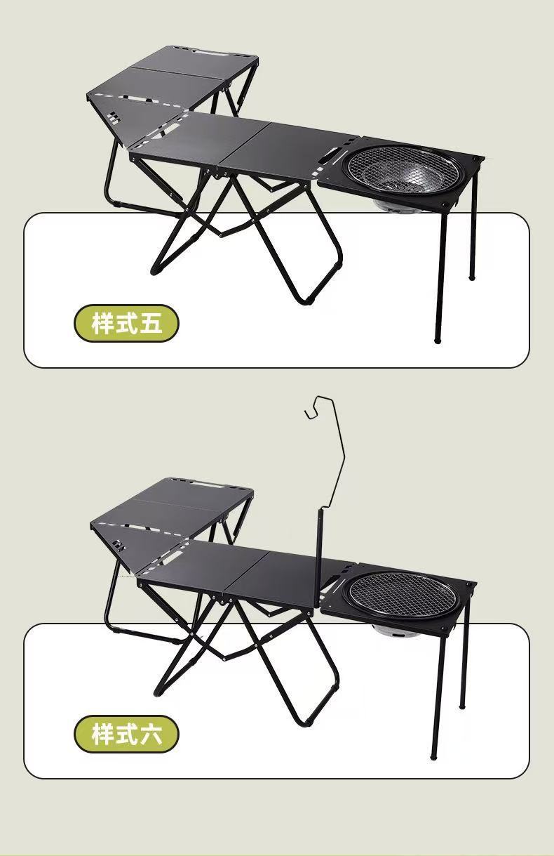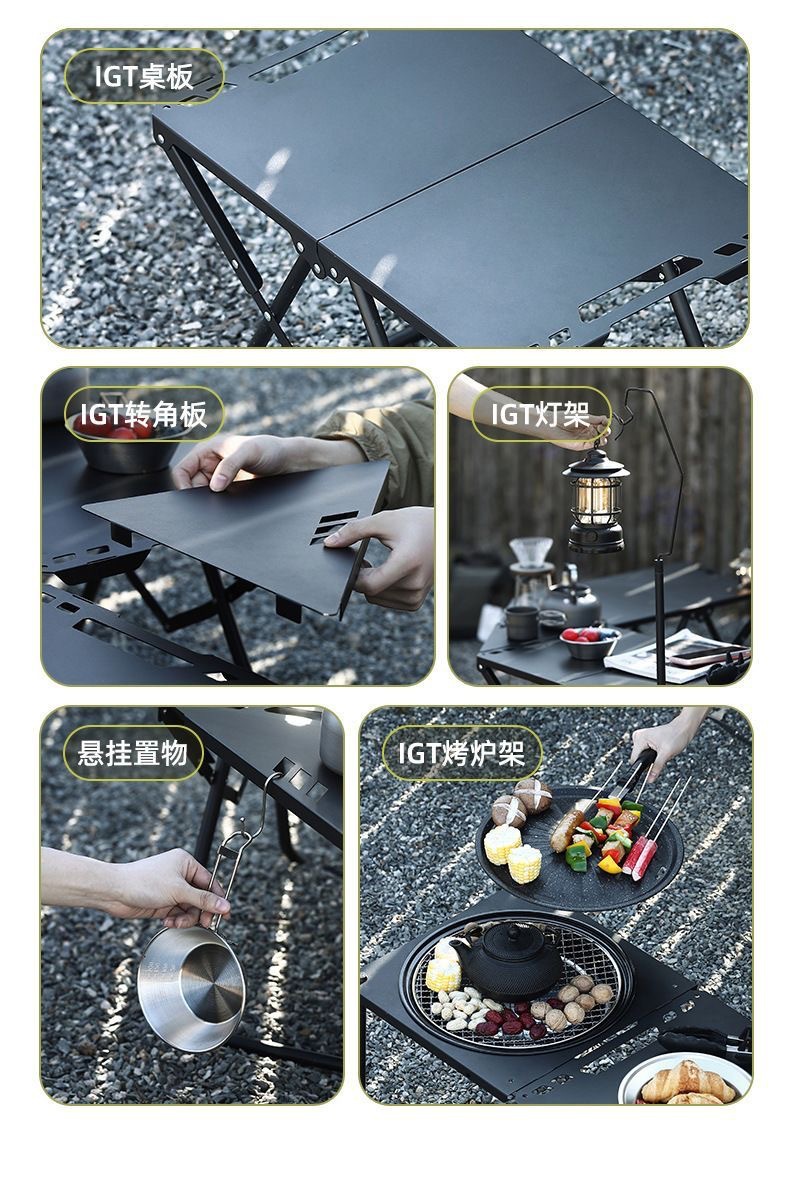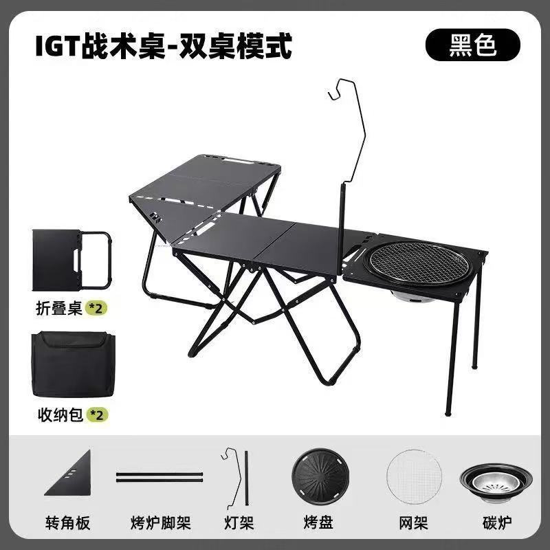• [IGT 전술 테이블*2+코너 보드+라이트 스탠드+바비큐 그릴]—다크 나이트 블랙