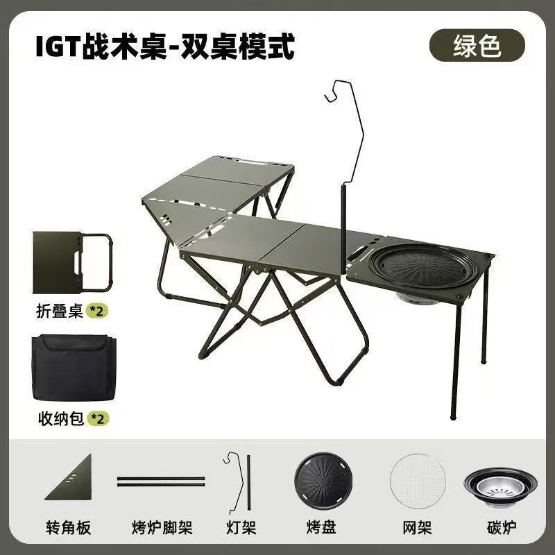 • [IGT 전술 테이블*2+코너 보드+라이트 스탠드+바비큐 그릴]—밀리터리 그린