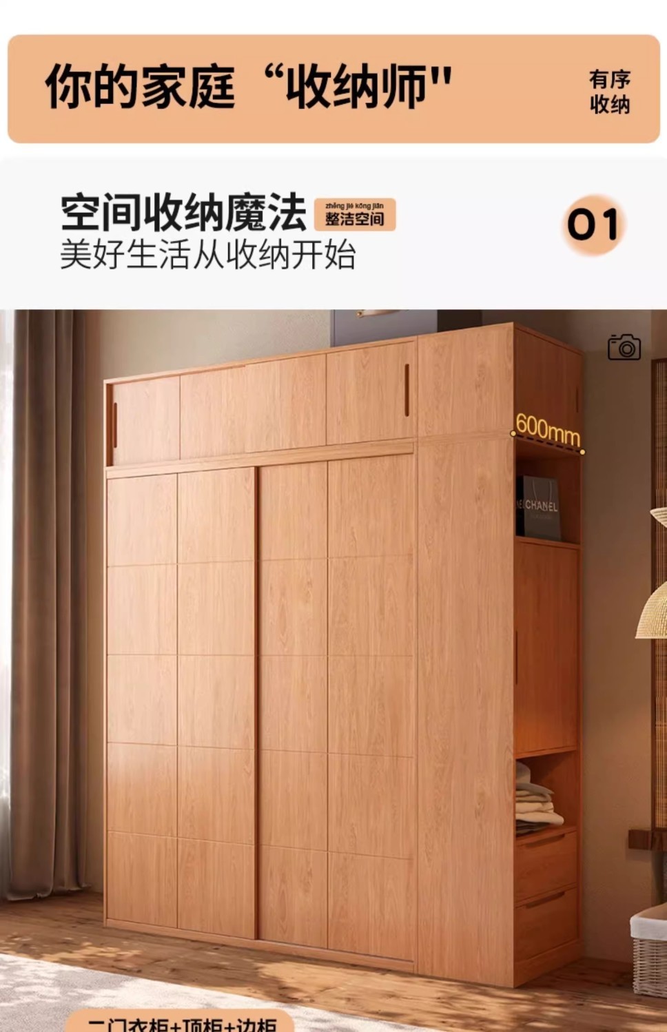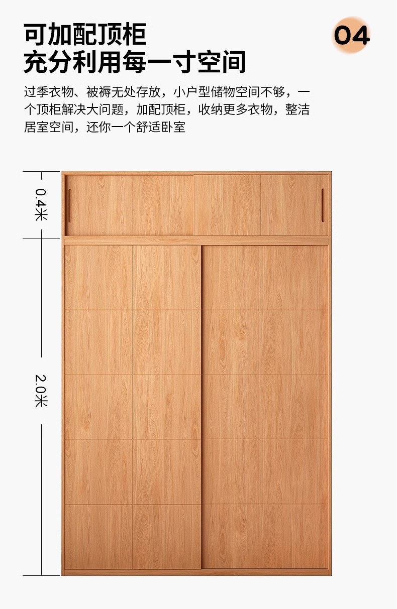• 2.0m 오크 옷장 + 상단 캐비닛