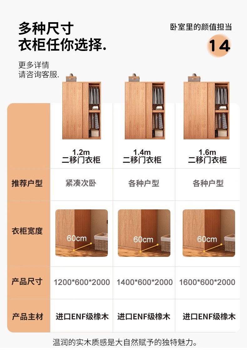 • 1.4m 오크 옷장 + 사이드 캐비닛
