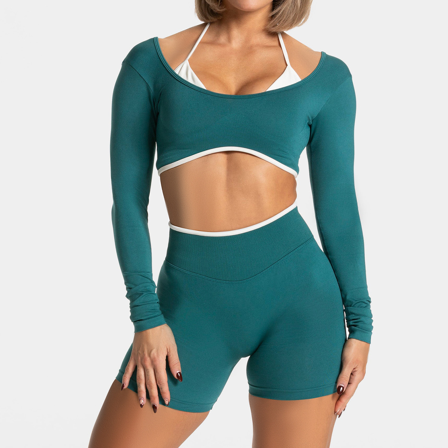 • 서스펜더 브라 청록색 + 반바지 청록색