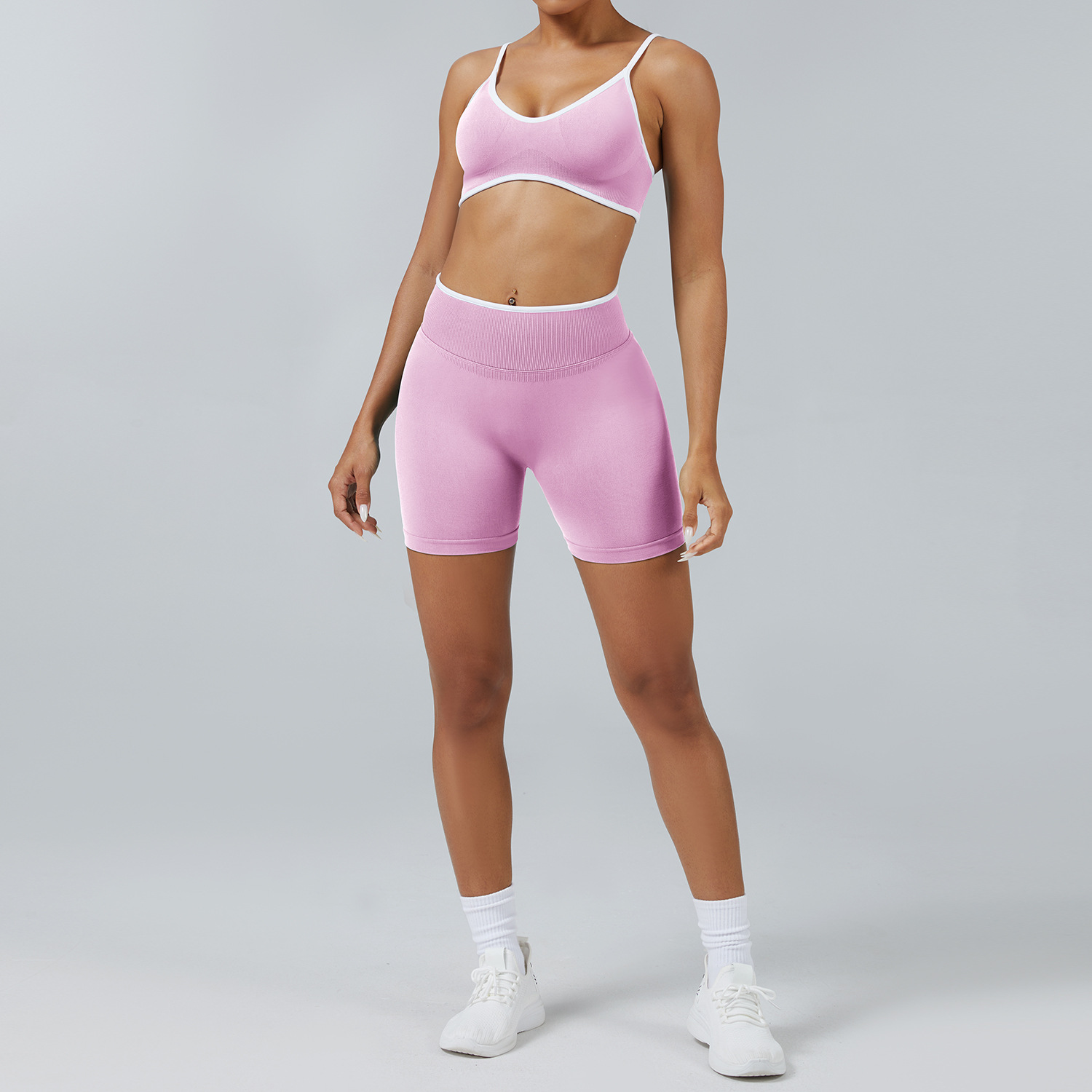 • 핑크색 서스펜더 브라 + 핑크색 바지