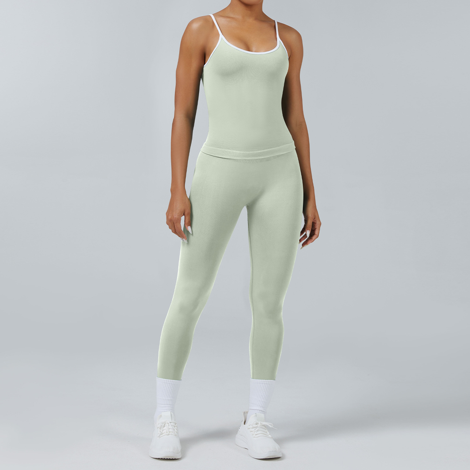 • 서스펜더 브라 피스타치오 그린 + 바지 피스타치오 그린