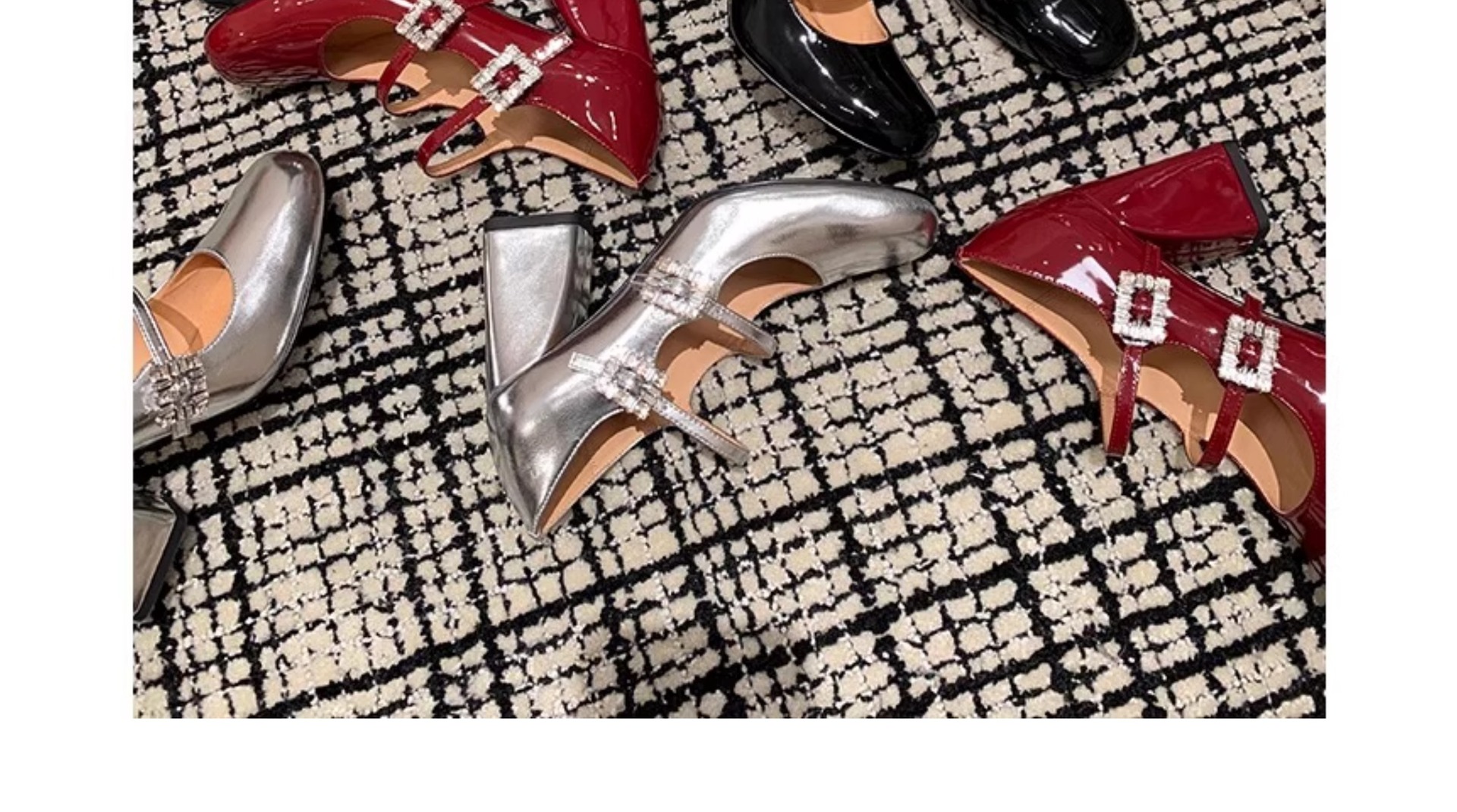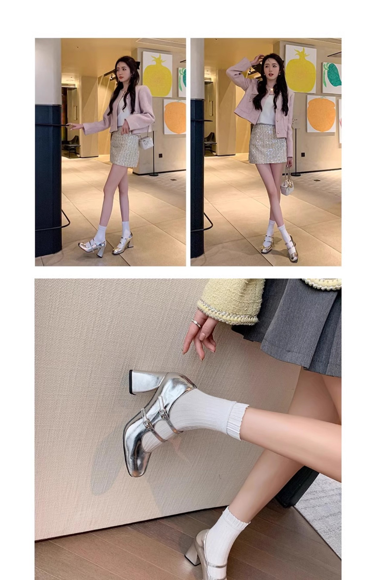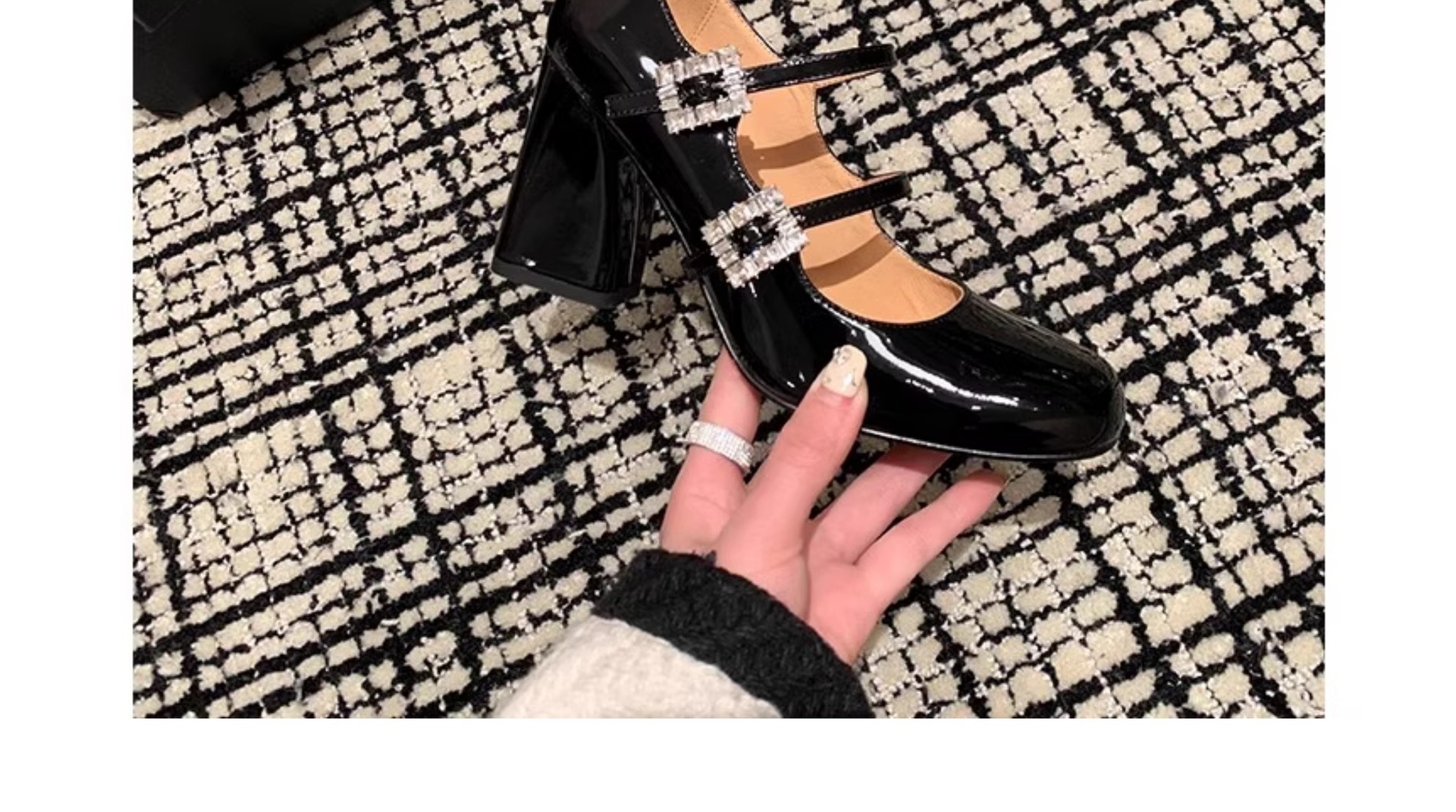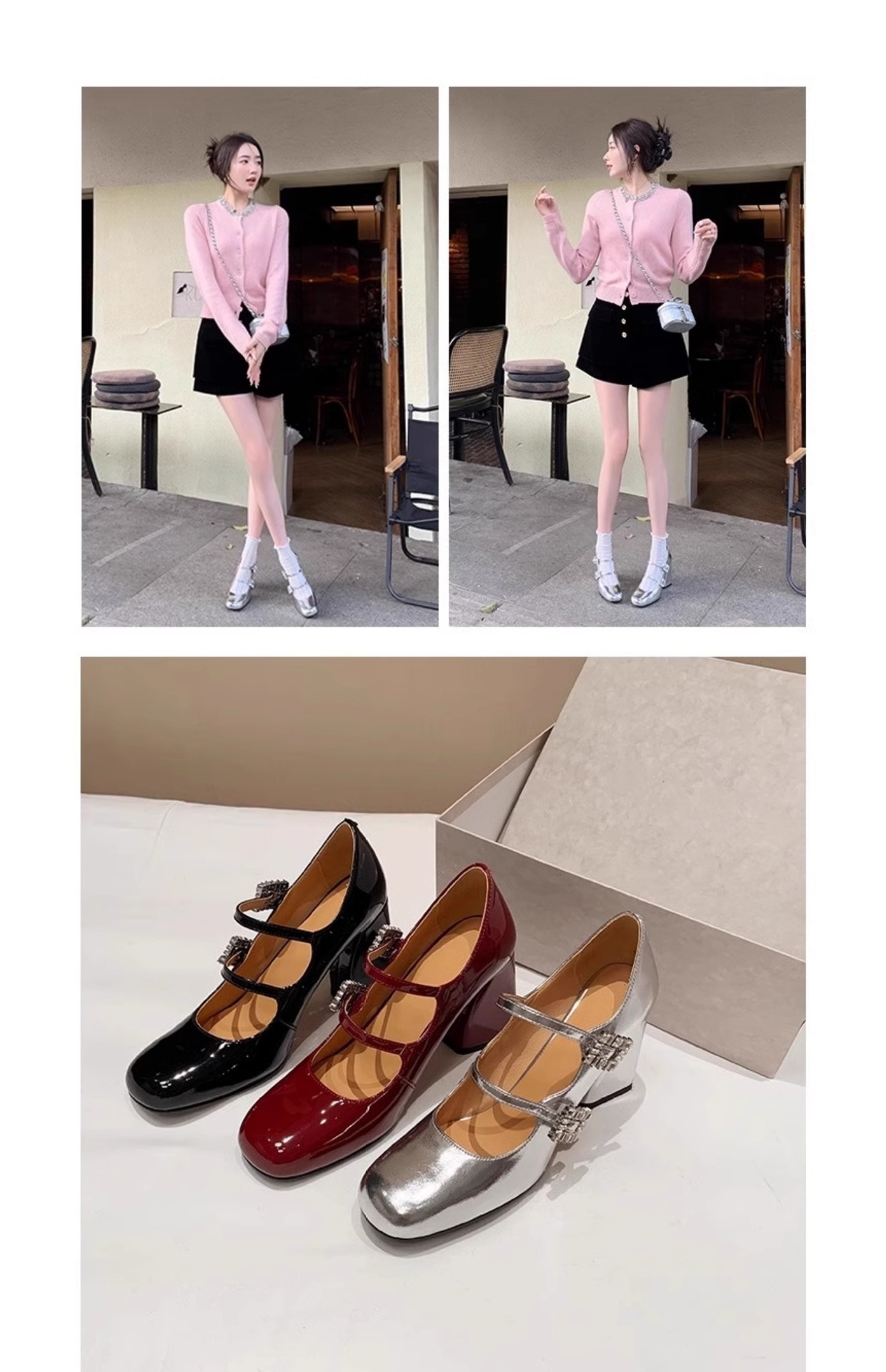 여성을위한 프랑스 복고풍 메리 제인 신발 2025 봄, 가을 스퀘어 토우 두꺼운 굽 싱글 슈즈 실버 원라인 버클 하이힐 작은 가죽 신발스토어 가기