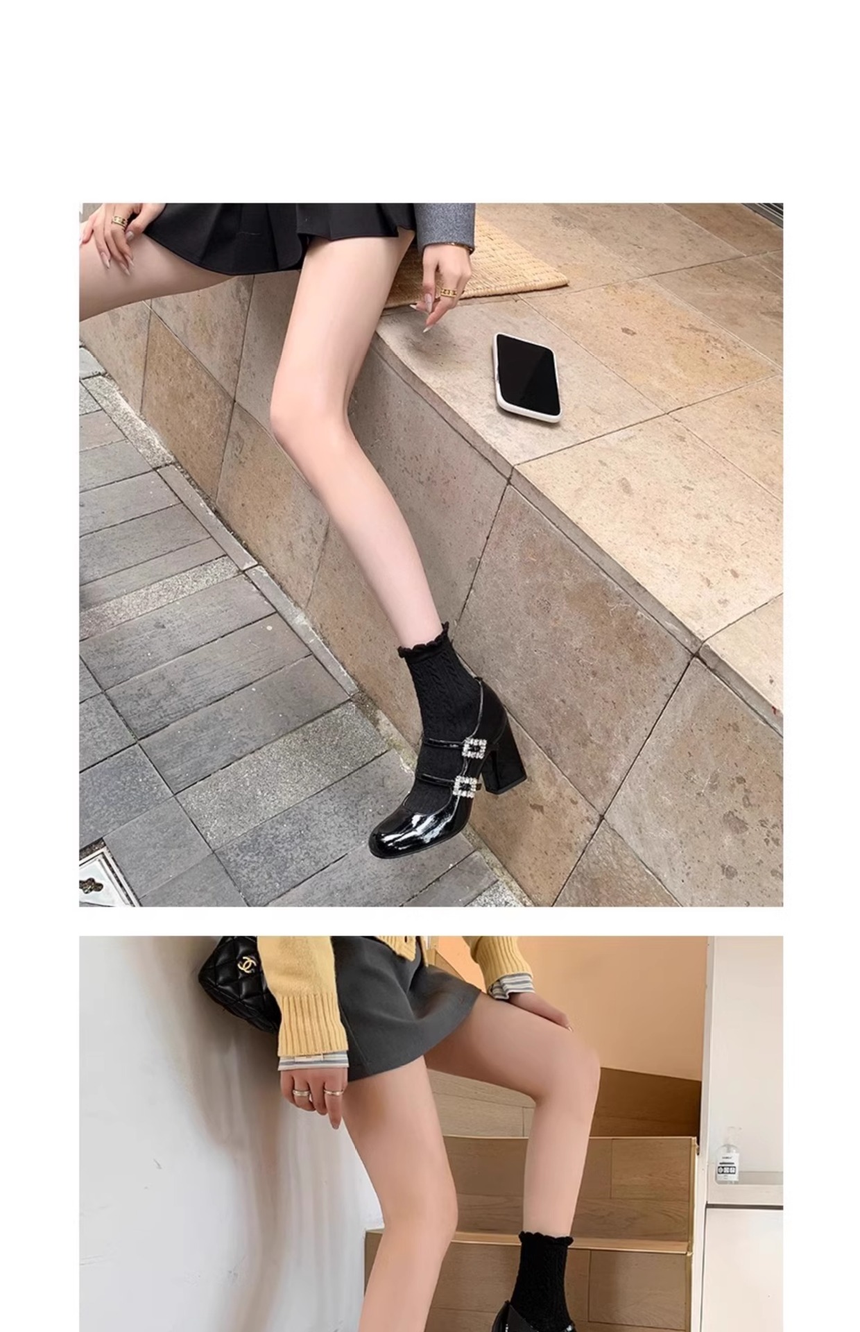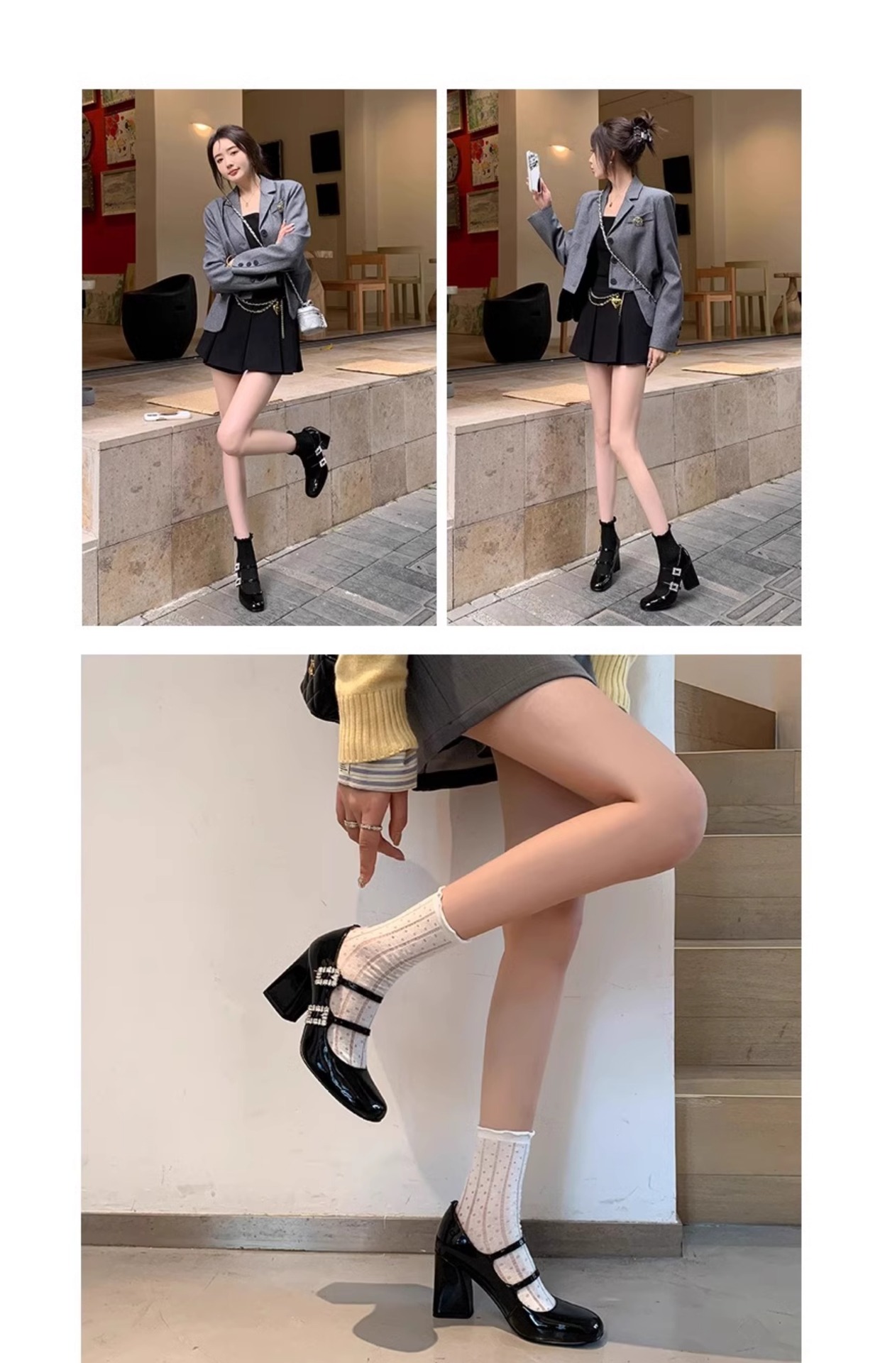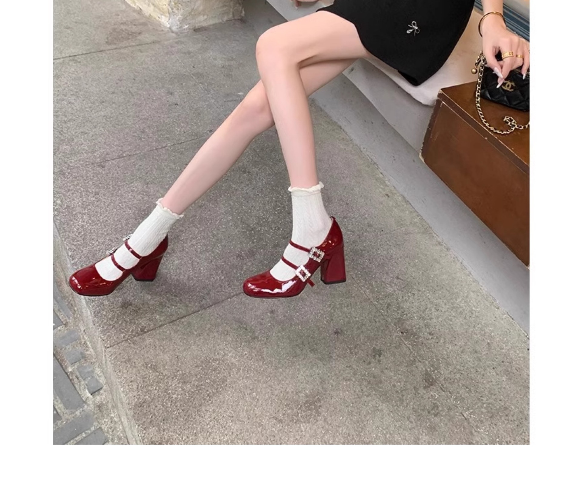 여성을위한 프랑스 복고풍 메리 제인 신발 2025 봄, 가을 스퀘어 토우 두꺼운 굽 싱글 슈즈 실버 원라인 버클 하이힐 작은 가죽 신발스토어 가기