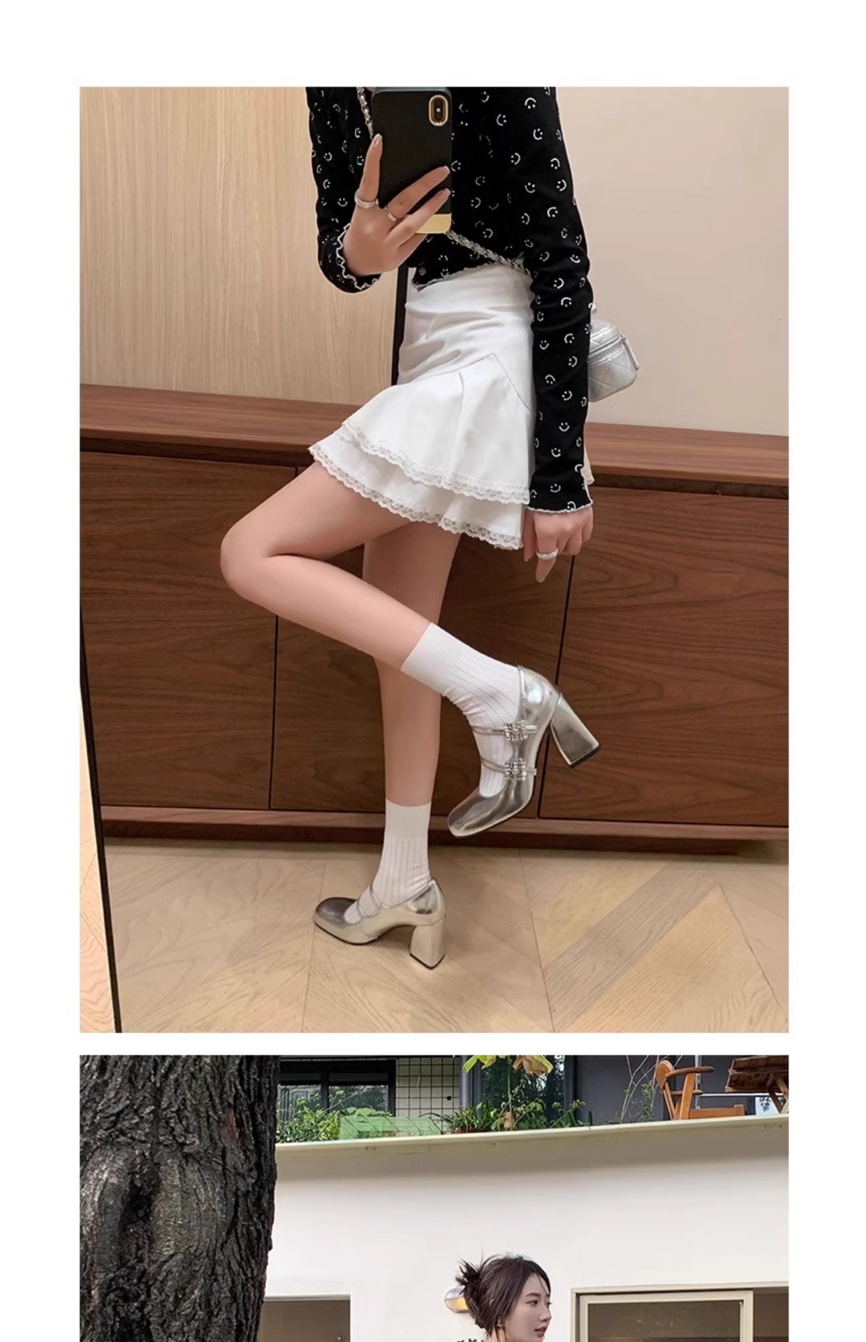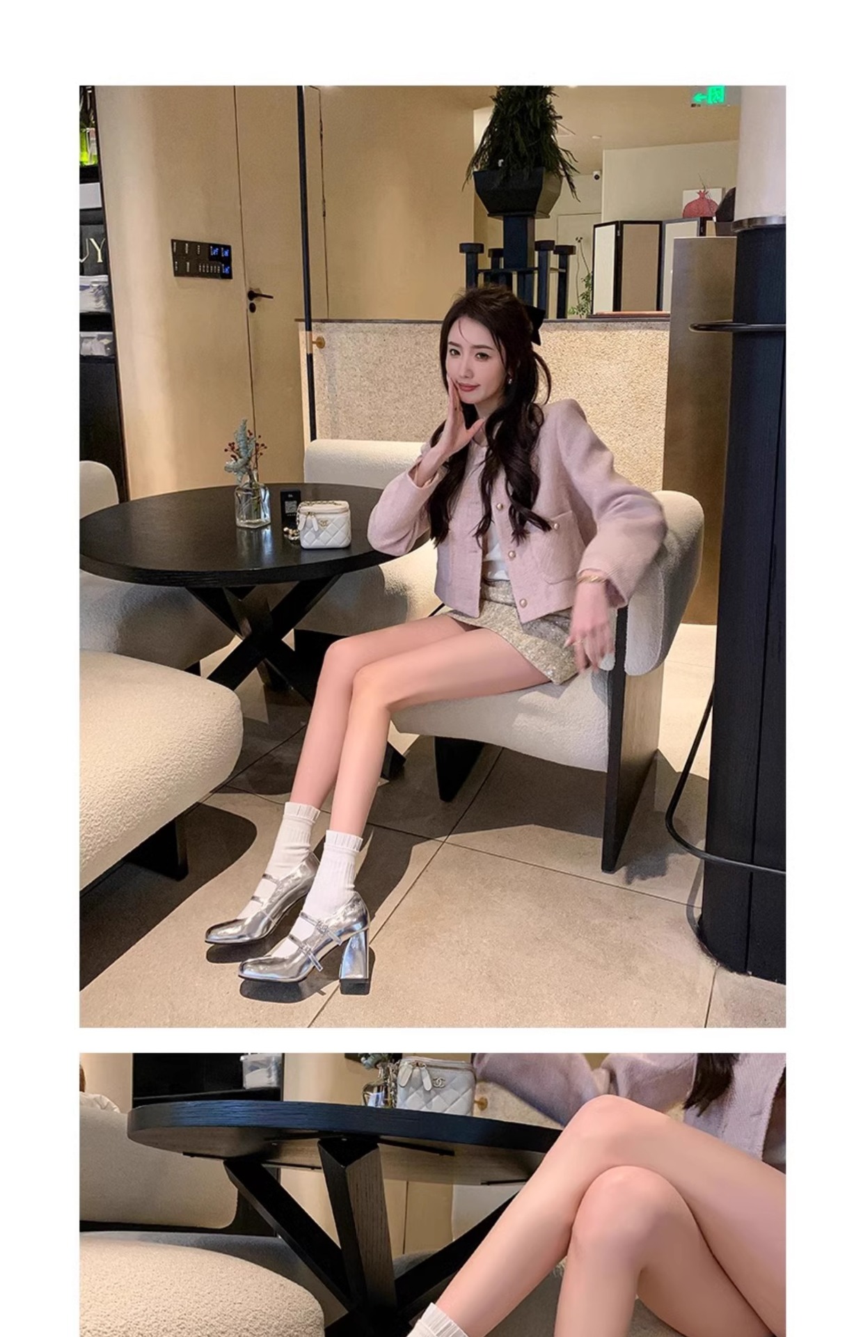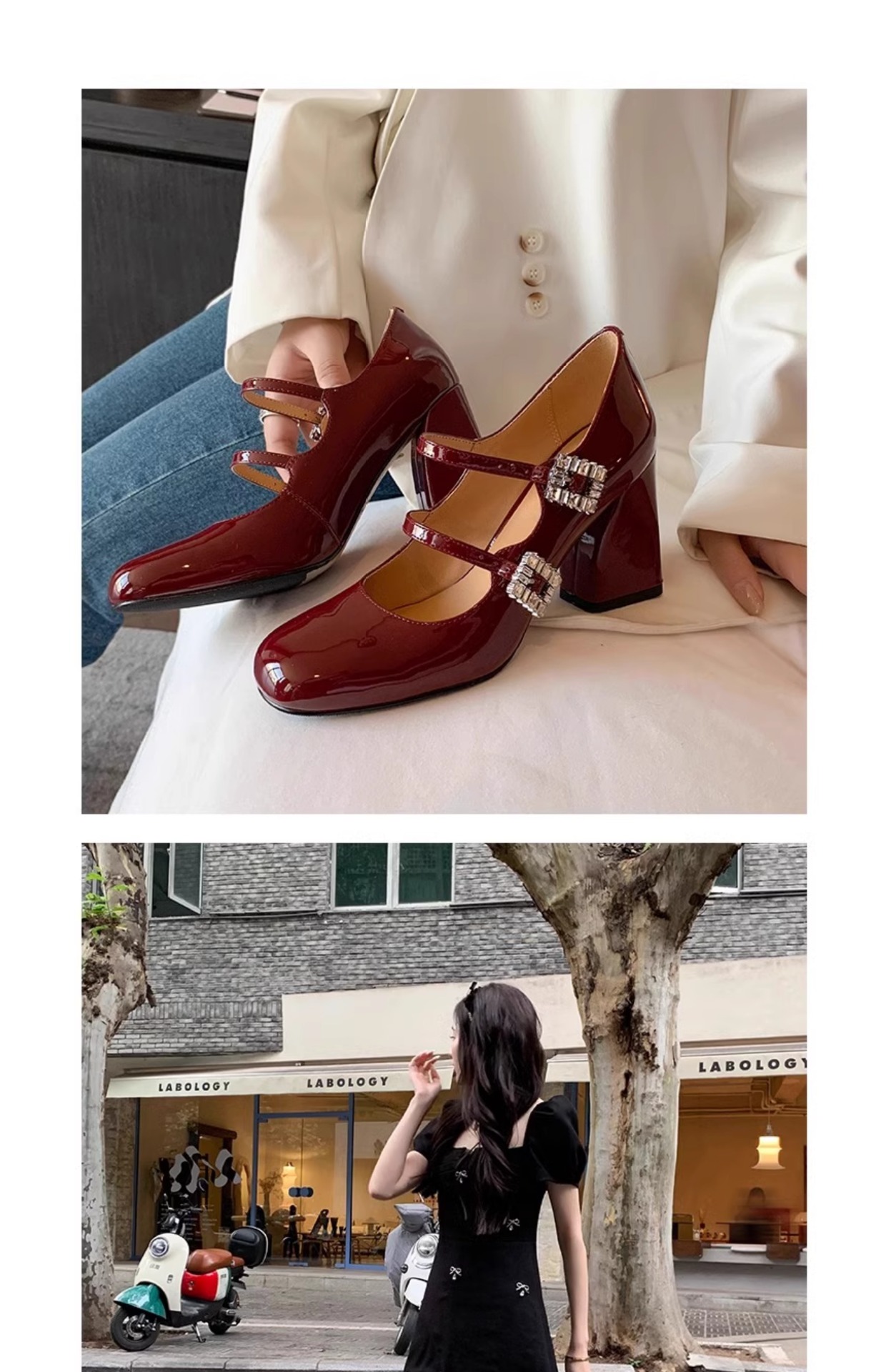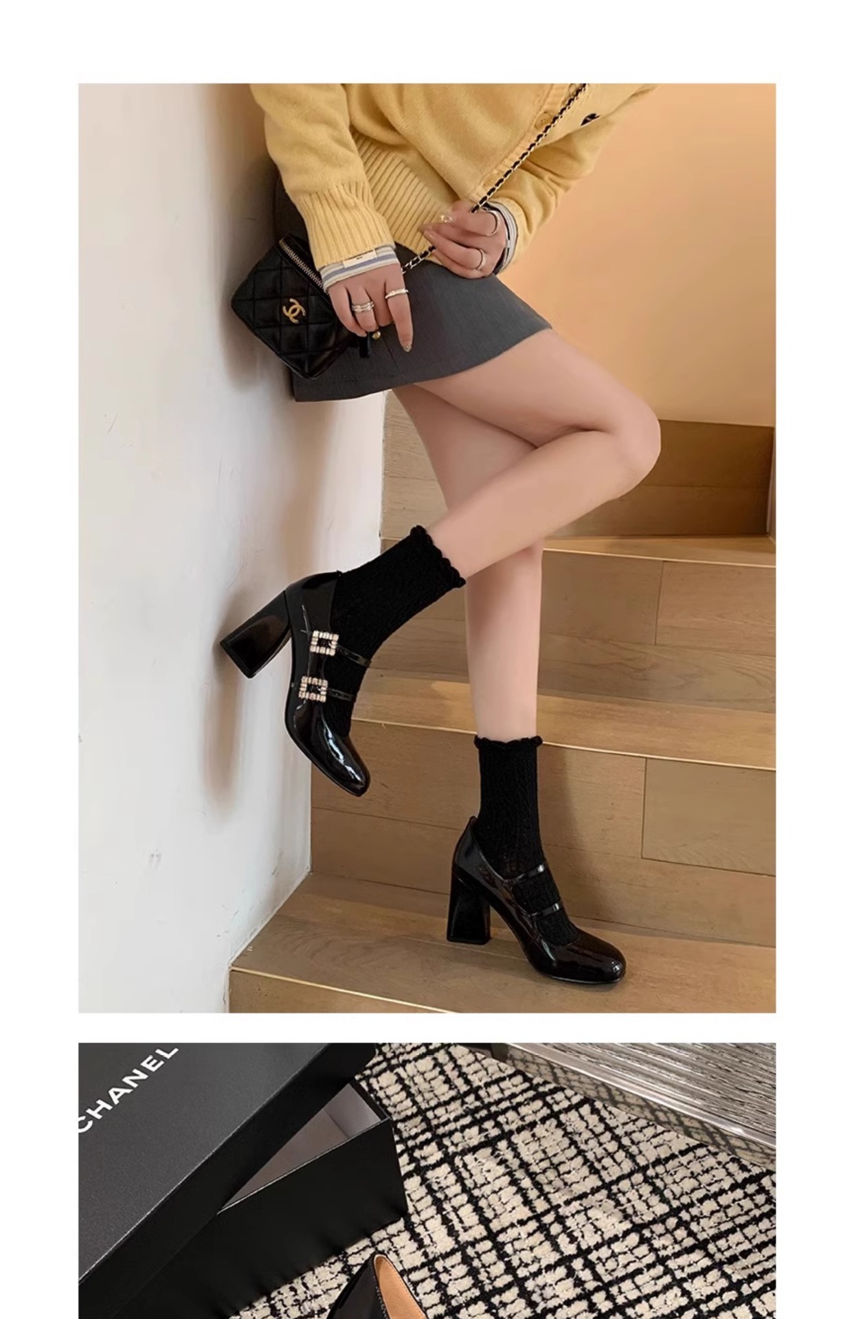 여성을위한 프랑스 복고풍 메리 제인 신발 2025 봄, 가을 스퀘어 토우 두꺼운 굽 싱글 슈즈 실버 원라인 버클 하이힐 작은 가죽 신발스토어 가기