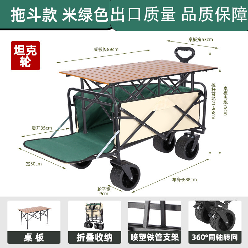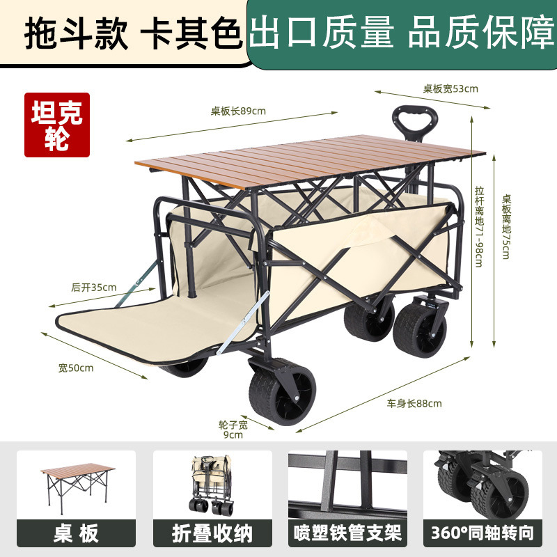 • 캠프카 + 높고 길어진 스톨 테이블 대형 카키색 트레일러 오프로드 휠