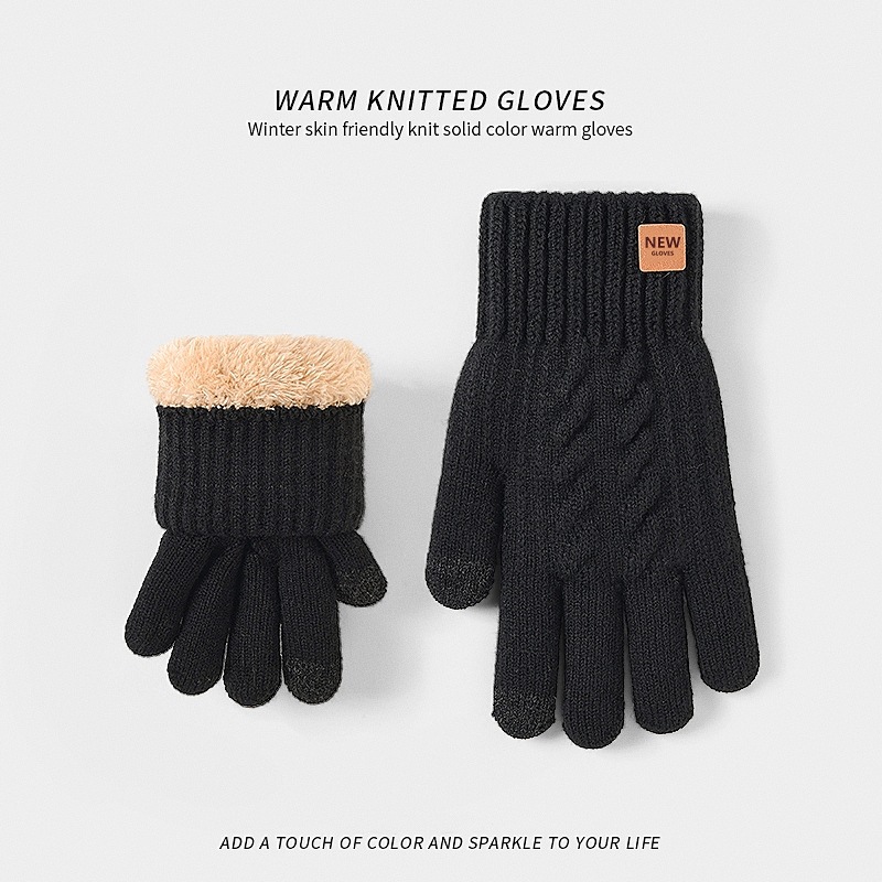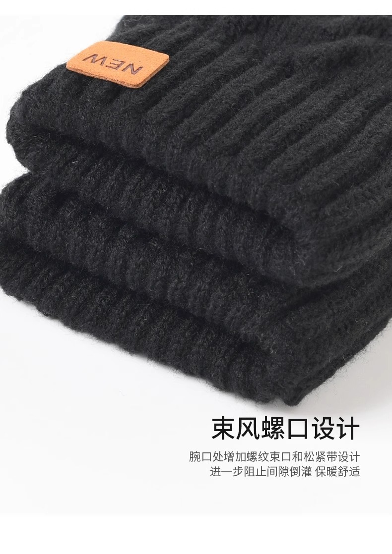 2025 더블 레이어 두꺼운 벨벳 겨울 터치 스크린 장갑 따뜻하고 내한성 남성용 니트 장갑 야외 사이클링 장갑